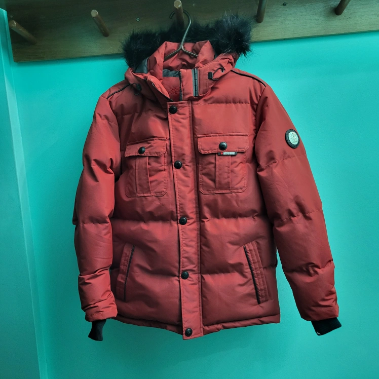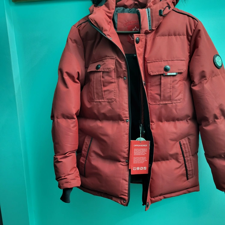 Here's a cozy red Oppenheimer winter jacket! It's in great condition and ready to keep you warm this winter