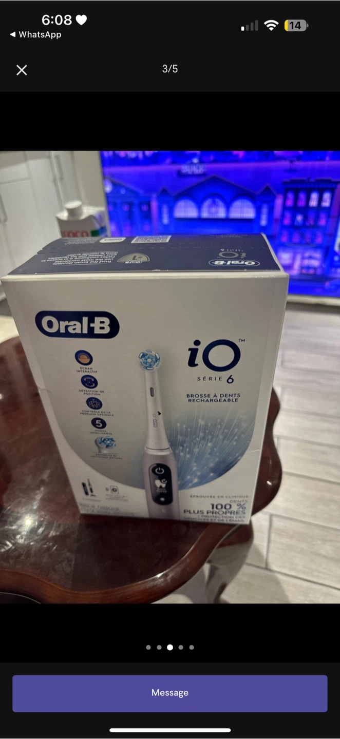 Selling a brand new Oral-B iO Series 6 rechargeable toothbrush! This toothbrush offers clinically proven 100% cleaner teeth and gum and enamel protection. It comes with a handle, charger, travel case, and brush head. The original price was $173.97. Comes with the box!