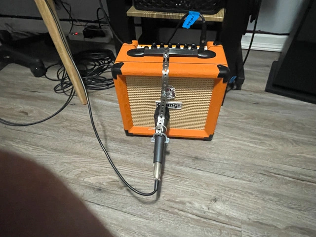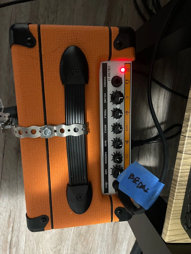Orange Crush amp for sale. Small size, large sound. This is a solid amp for bedroom recording, practicing or small gigs. Has a nice clean sound and handles many pedals well. Has only been used sparingly.
