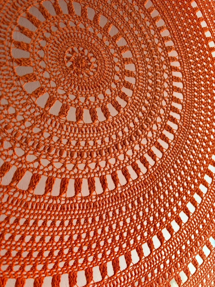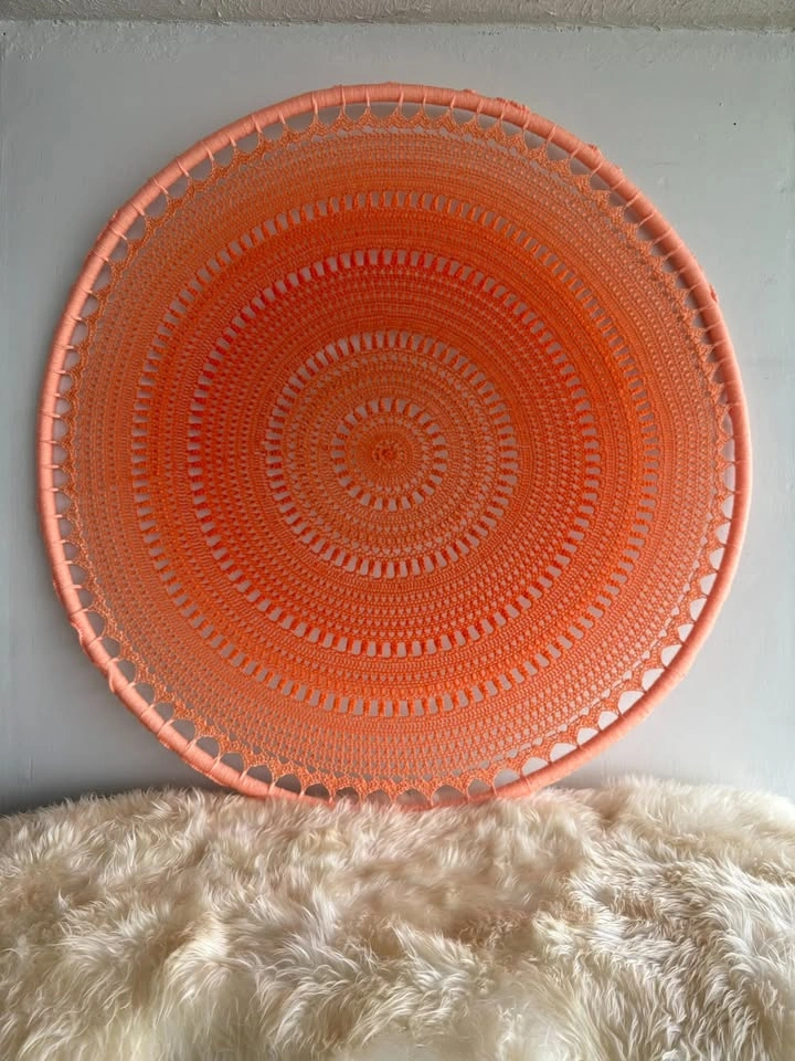 Add a touch of whimsy and spirituality to your space with this Orange Ombre Mandala, a beautiful example of decorative art that's both eye-catching and versatile. At a generous size of 37.5 inches, this mandala is perfect for making a statement in any room, from your bedroom to your living room or even your office. Its vibrant orange hues and intricate crochet design bring a sense of fun, curiosity, and a mystical vibe to your decor. Crafted from 100% cotton (main) + 100% acrylic (hoop) yarns on a lightweight plastic hoop, this mandala is an easy addition to your home without the need for any additional parts. It's a handmade piece, ensuring you receive a unique creation that captures the essence of Canadian craftsmanship. Whether you're looking to elevate your own space or gifting it to someone special, this mandala is a multipurpose piece that suits any occasion.