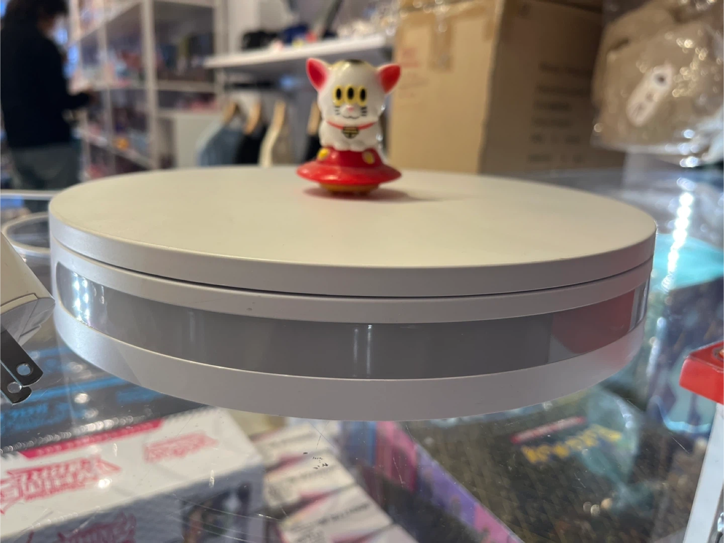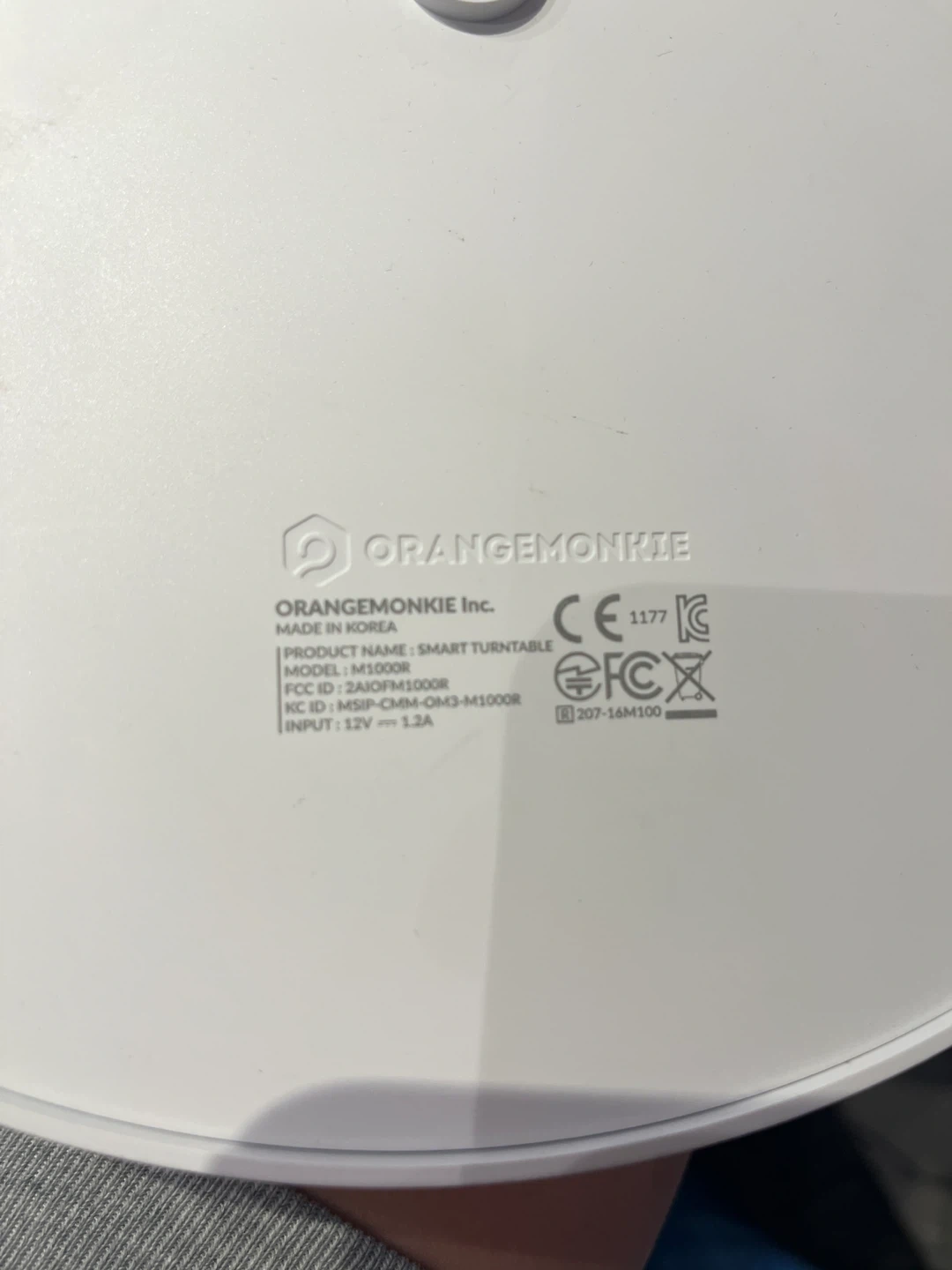 Selling an Orangemonkie Smart Turntable, model M1000R. This turntable is great for showcasing products. It requires a 12V 1.2A input. It even has a light so you can put it inside a Photo Booth. Control the turntable with a free app or use manual button.