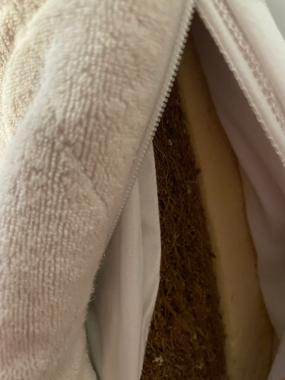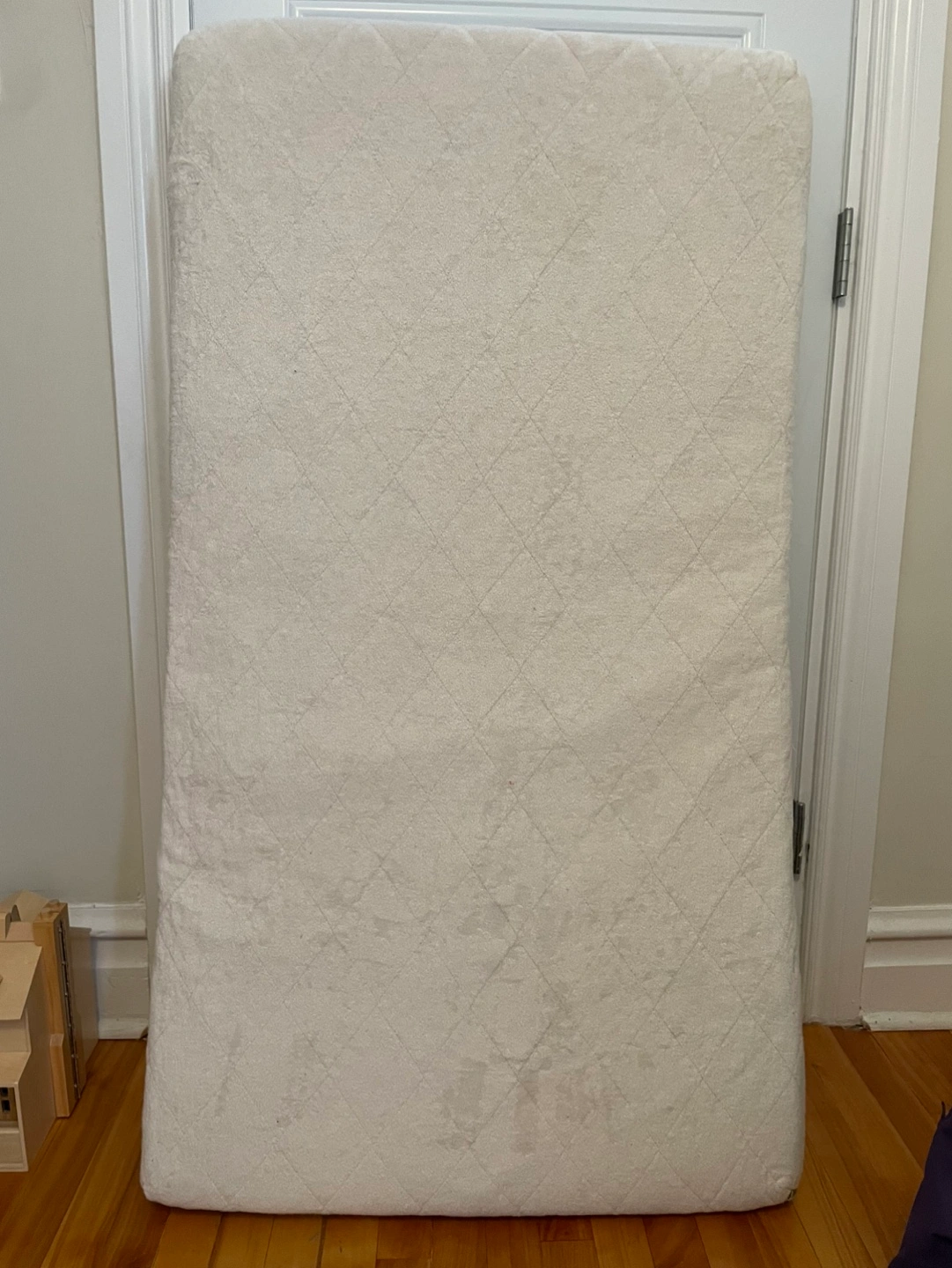 Natura crib mattress. Made in Canada. One side is coir (coconut fibres bonded with latex) is very firm and suitable for babies. Flip it over to the softer, latex side for toddlerhood. All organic. Used for 3 kids, but still in good shape. From a smoke-free, pet-free home.