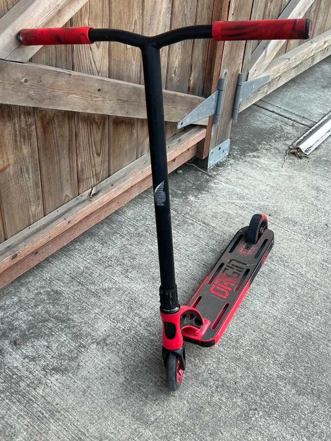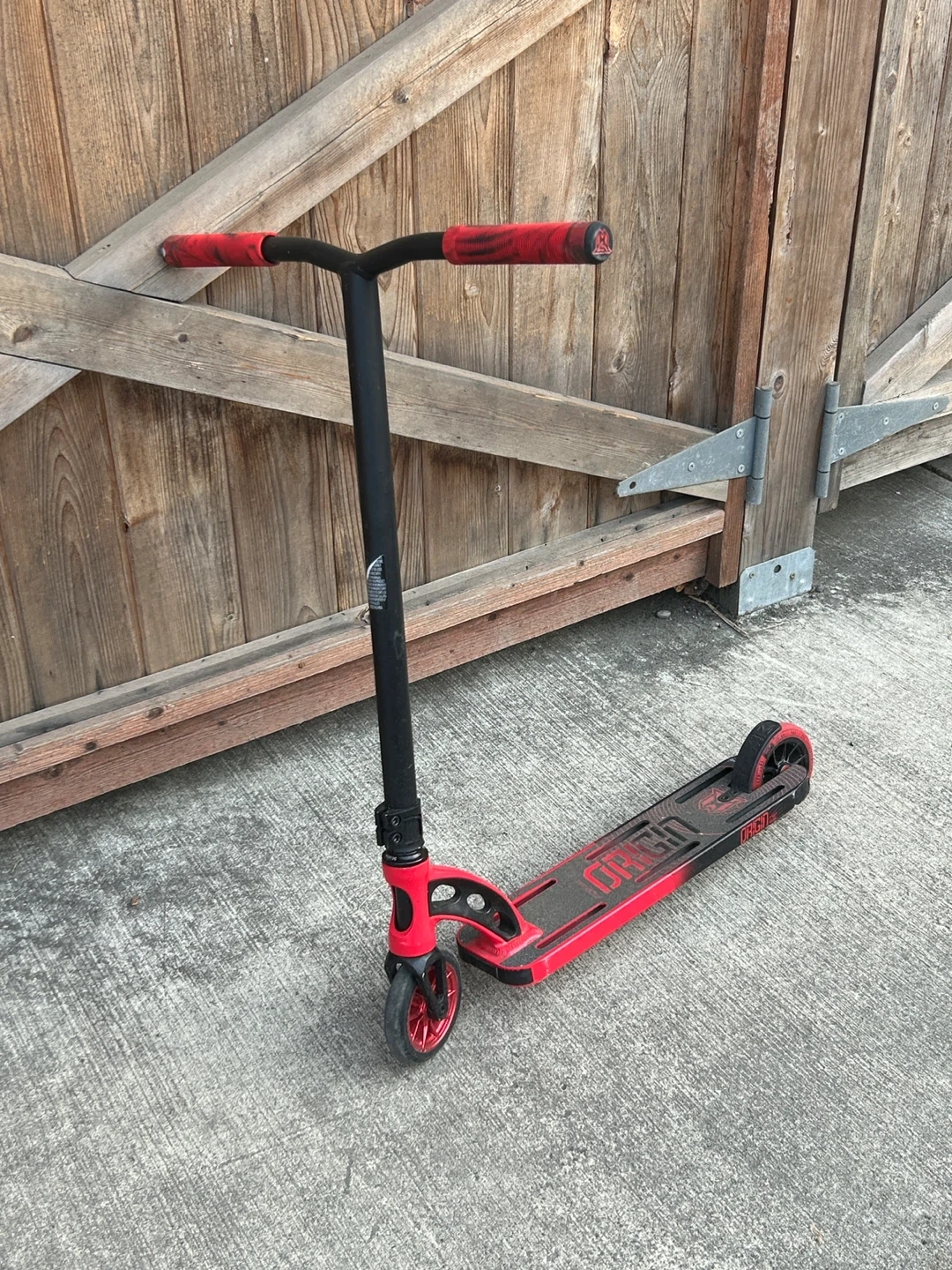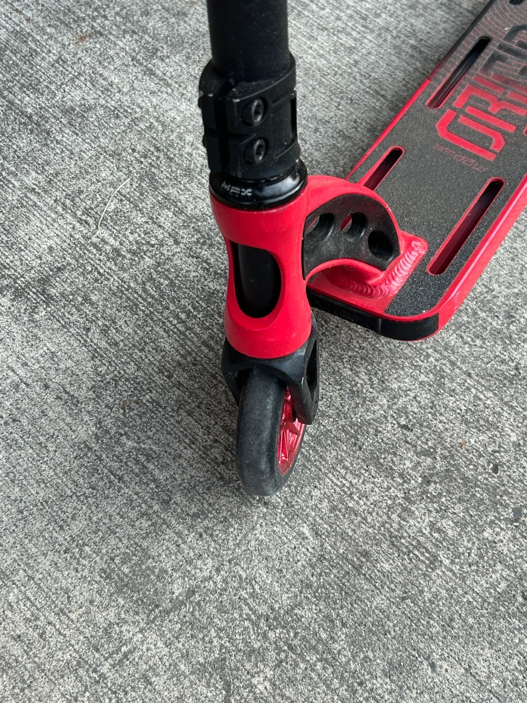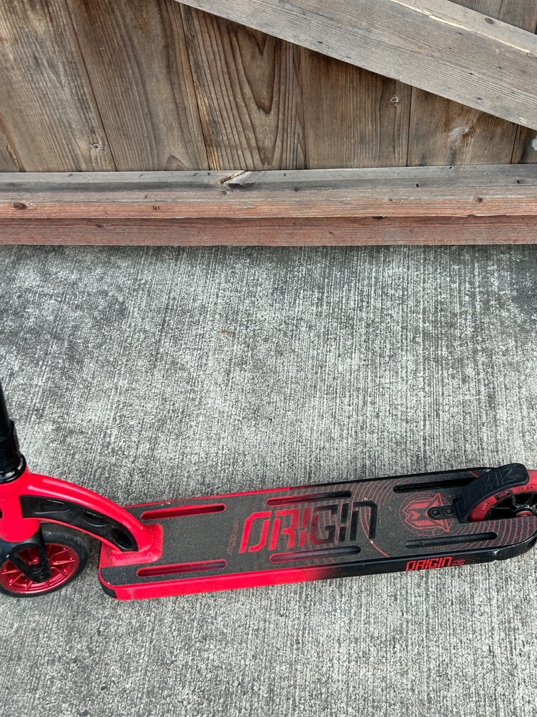 Selling an Origin Pro stunt scooter in red and black. It shows some signs of use but is still in good condition for tricks and stunts