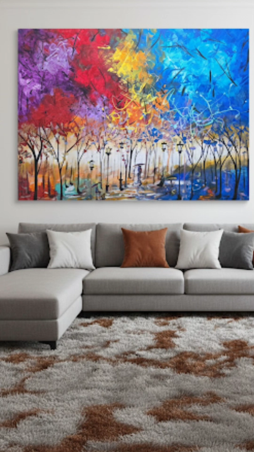 Huge original hand-painted painting by local artist Walk in Stanley Park 60"x48 Acrylic on canvas with varnish protection Ready to hang to view more of my artwork go to my Instagram zkart2021 Custom order painting available Abstract modern cubist landscape cityscape flowers