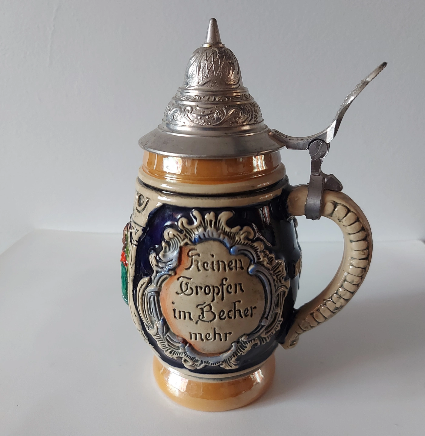 Check out my other listings for even more unique finds! This is an original German Beer Stein with lid, featuring traditional German designs and inscriptions. It's a unique collectible piece with a hinged metal lid and intricate detailing. --- Special Offer: Bundle this item with other items from my listings for amazing discounts! Pickup Only: Item is available as long as the listing is visible. Delivery is not possible.