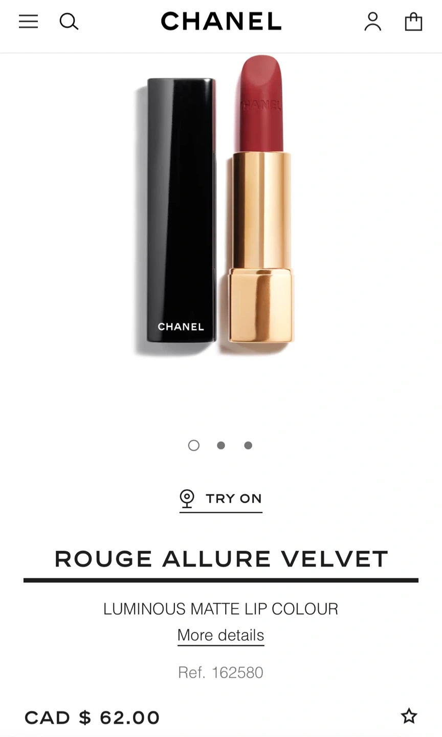 Selling a Chanel Rouge Allure Velvet lipstick! It's a luminous matte lip colour. Originally bought for $70 CAD. It's in great condition and ready for a new home #shade 58