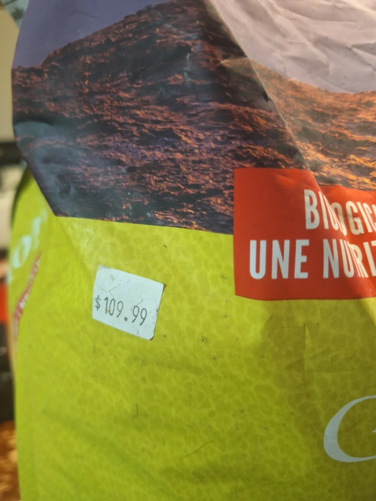 Selling a bag of Orijen Senior dog food. It's biologically appropriate nutrition for senior dogs. It's made with fresh or raw chicken, turkey, and wild-caught fish. Originally bought for $109.99