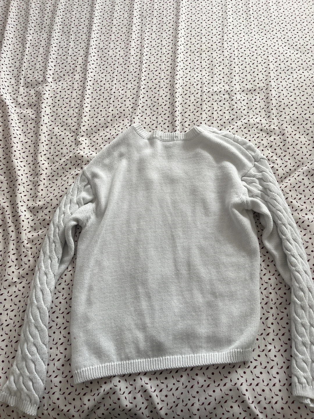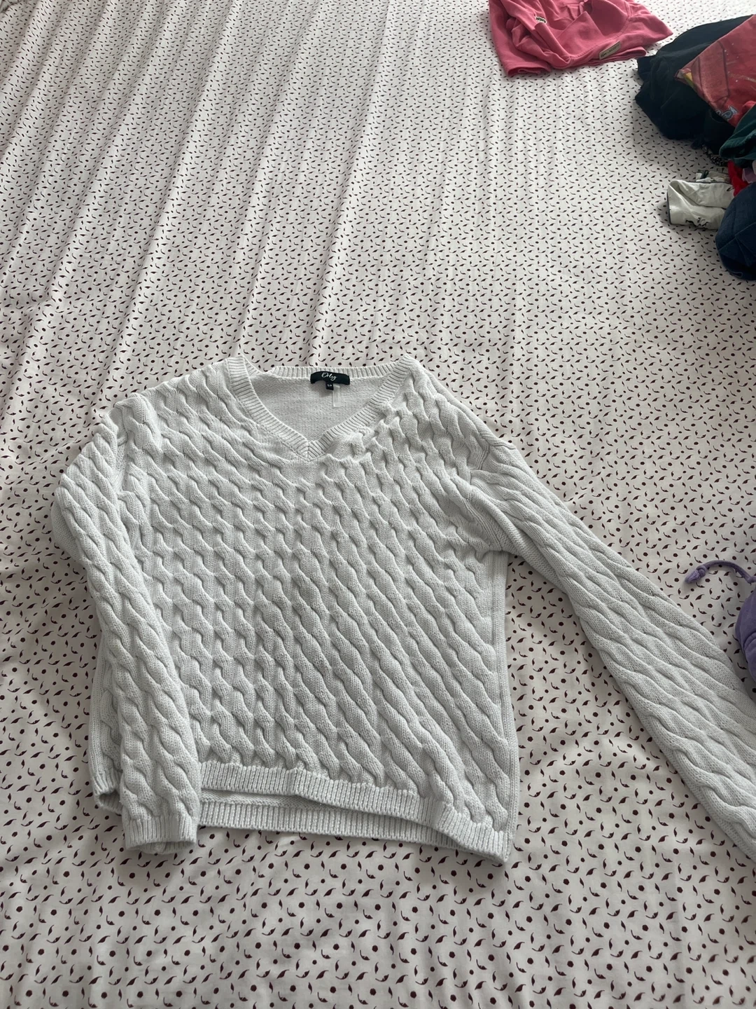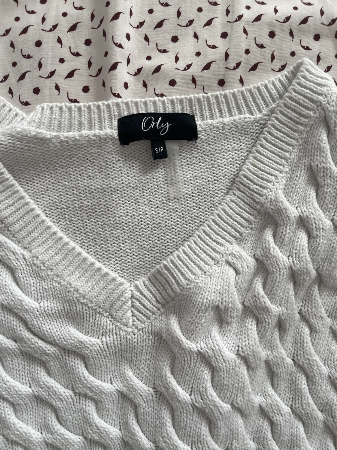 Selling a cute white cable knit sweater from Only! It's a size S/P and in great condition. Perfect for layering or wearing on its own