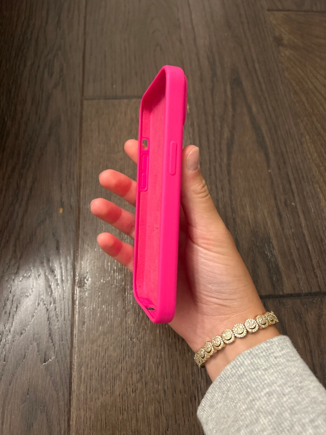 Bright Pink silicone case designed for iPhone 14 but can also fit a regular iPhone 13 perfectly. In perfect, new condition (out of packaging).