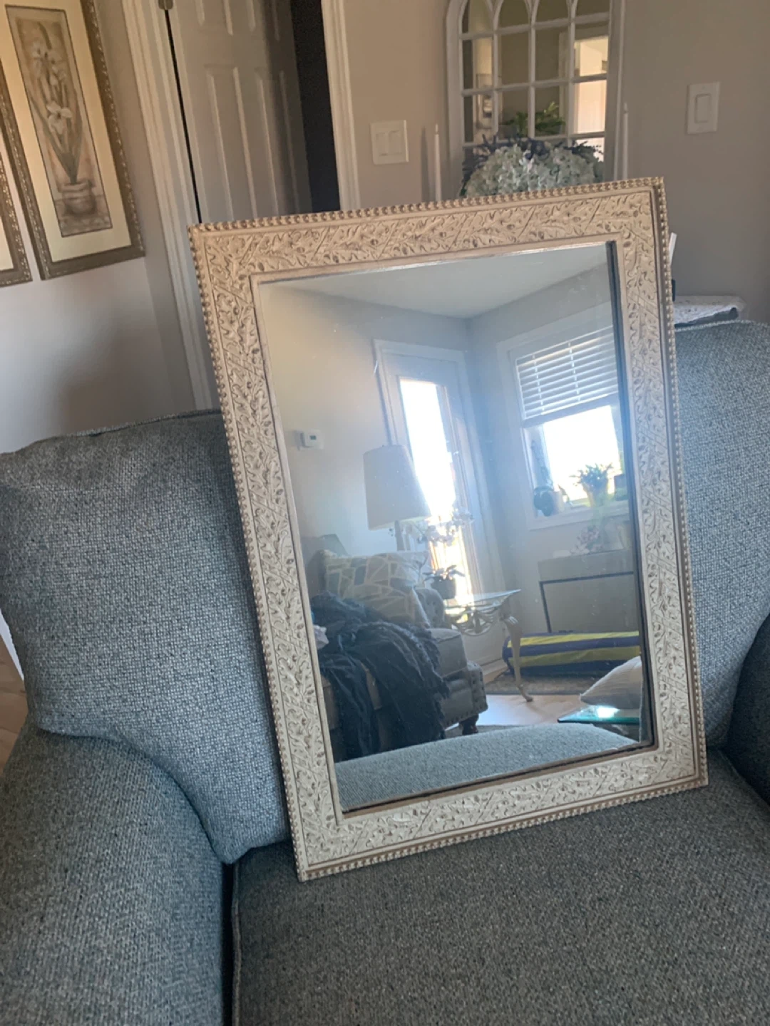 Selling a lovely ornate framed mirror. It's in great shape and would add a touch of elegance to any room. The frame has a beautiful detailed design. Perfect for an entryway, bedroom, or living room!