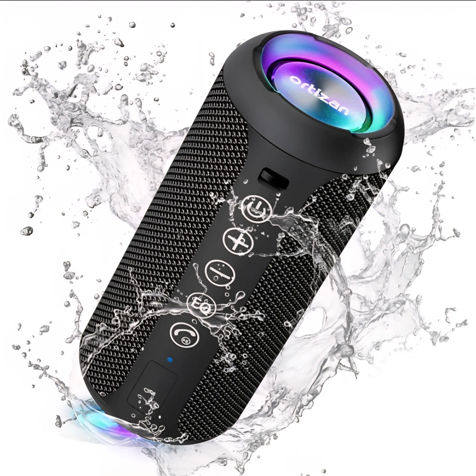 Ortizan Portable Bluetooth Speaker, IPX7 Waterproof Wireless Speaker with 24W Loud Stereo Sound, Outdoor Speakers with Bluetooth 5.0, 30H Playtime,66ft Bluetooth Range, Dual Pairing for Home [RGB Colorful Light Show]: The wireless LED Bluetooth speakers not only a speaker but also as a unique night theme light, it provide different color-changing themes. Using Ortizan bluetooth speakers, a totally reimagined rainbow light show that pulses, phases, and shines to the beat of your music. While you enjoy music, gradient lights would truly bring you party atmospher. Using night theme light, you could just open it as a led light without use it to play music.