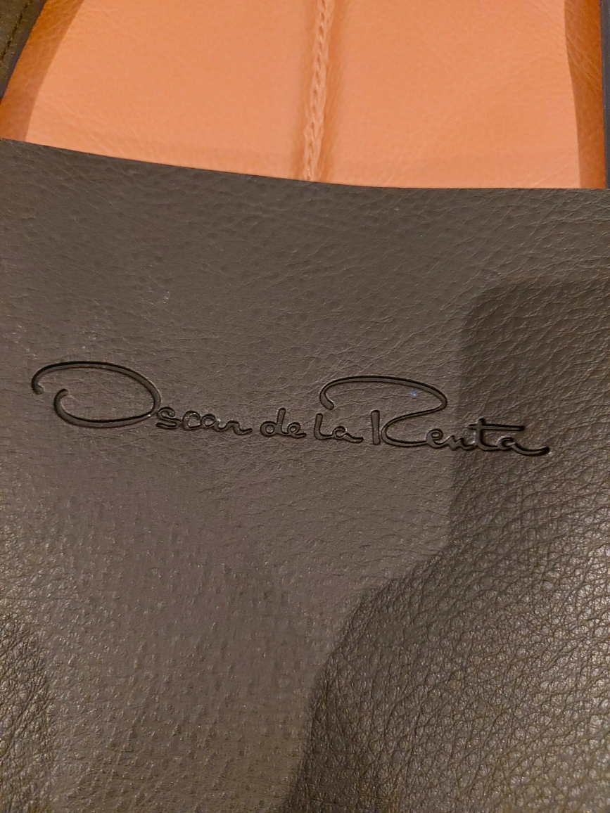 I'm selling a lovely black leather tote bag from Oscar de la Renta! It's in great condition and perfect for everyday use. The leather is soft and durable, and the simple design is super stylish
