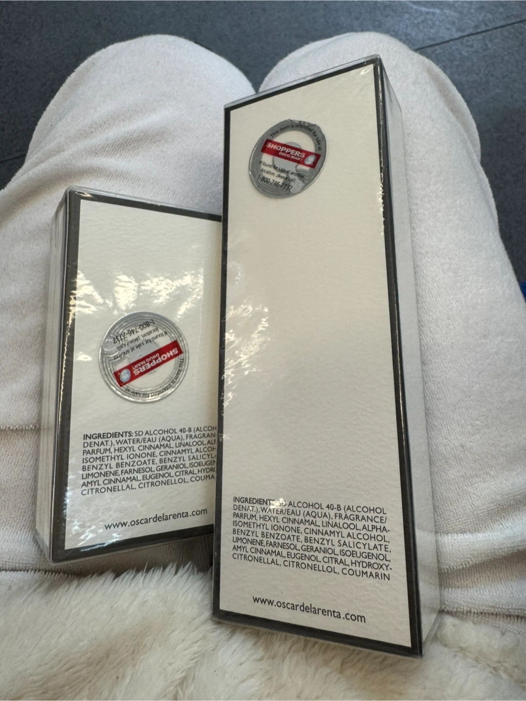Selling a set of Oscar de la Renta Eau de Toilette fragrances. One is 50 ml (1.7 fl.oz.) and the other is 100 ml (3.4 fl.oz.). Both are natural sprays and come in their original boxes