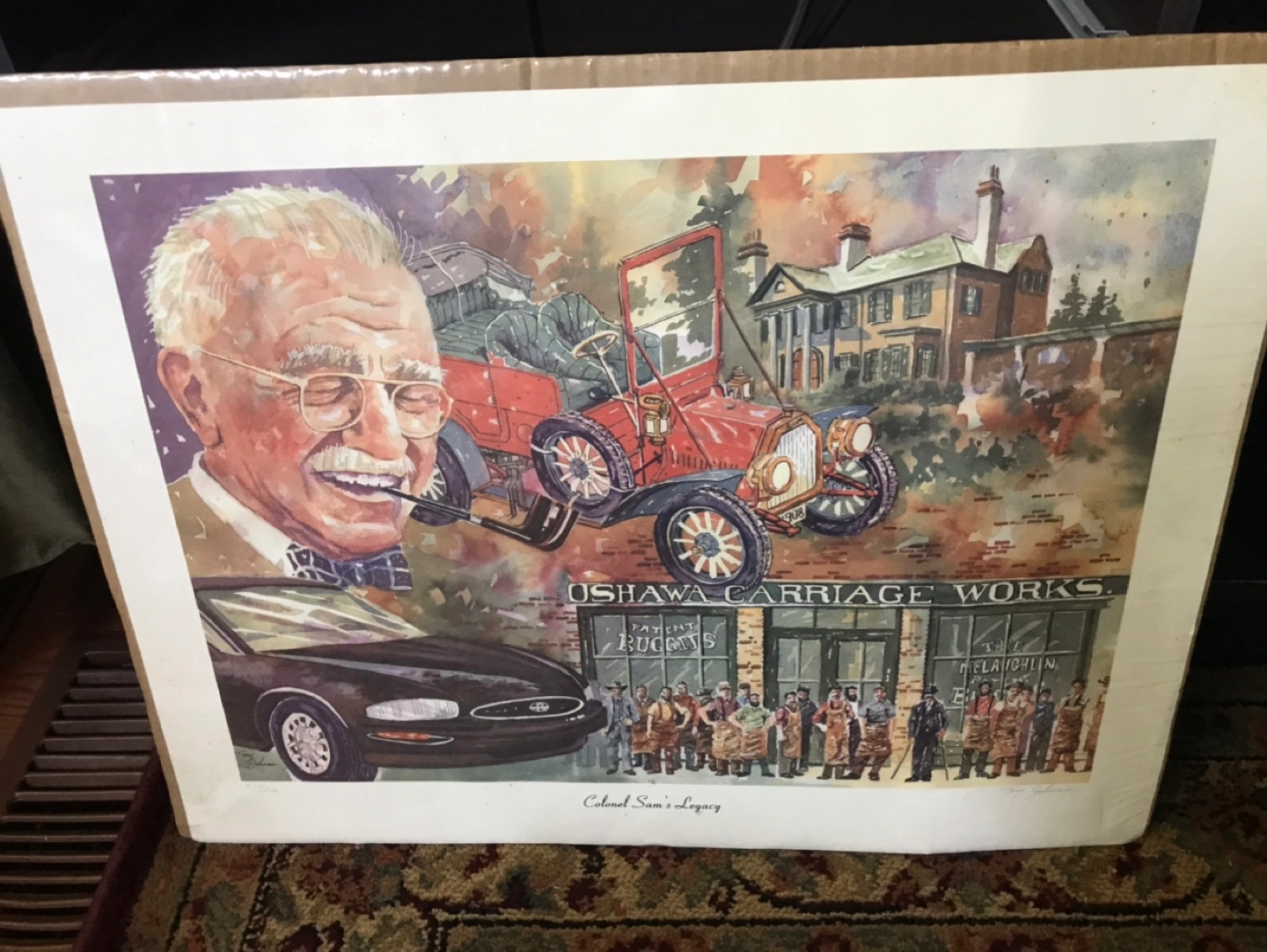 Selling an art print titled "Colonel Sam's Legacy" featuring Oshawa Carriage Works. The print is in good condition and comes in its original box. A nice piece for history buffs or car enthusiasts!