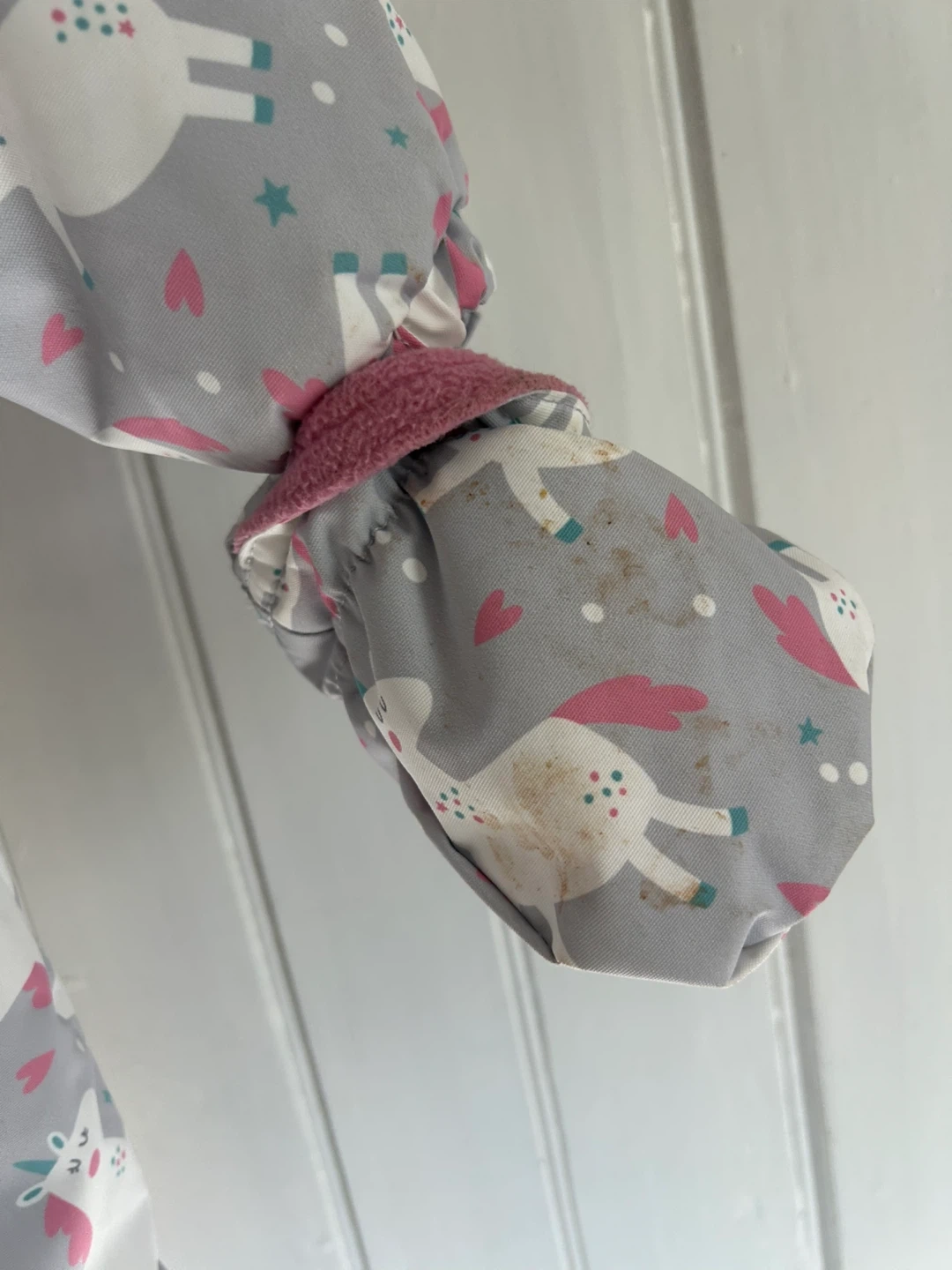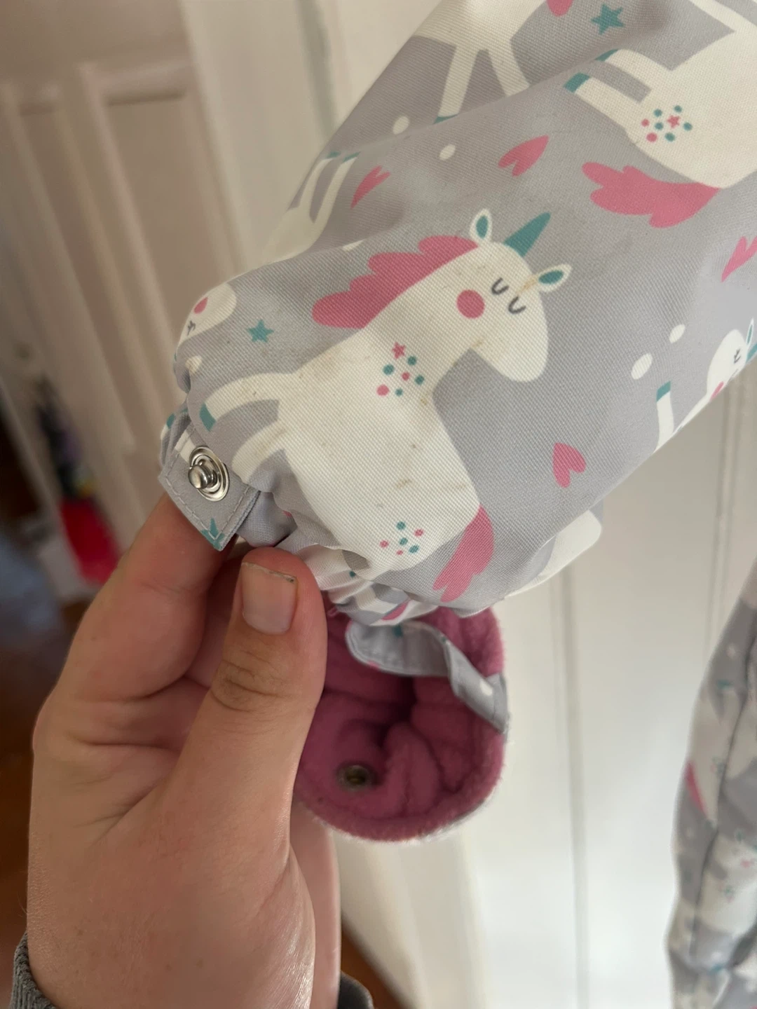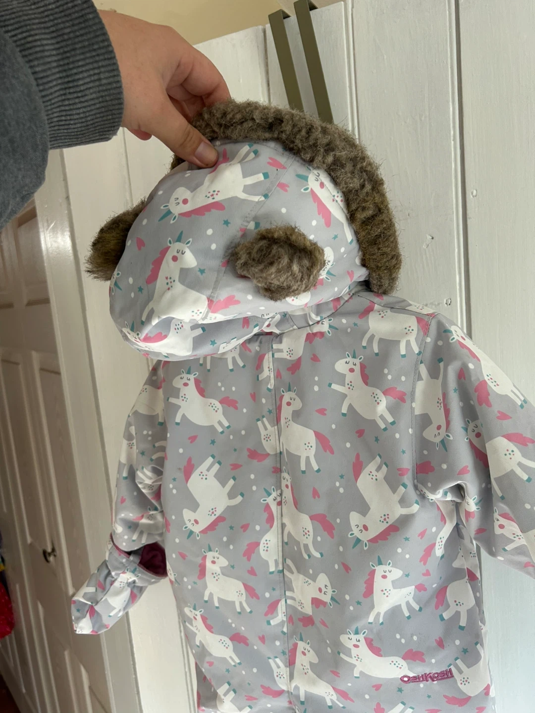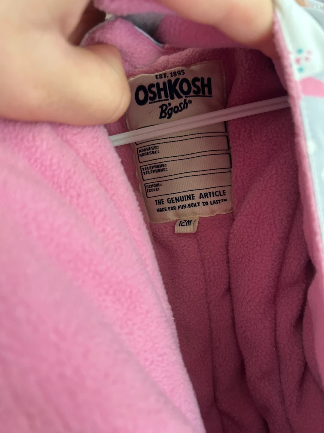 Oshkosh brand. Snowsuit with double zipper and removable mittens and booties. Grey, white & pink unicorn print. Size 12m. Like new condition, Warm and waterproof with no wear but some staining I haven’t tried removing, all photographed $15 Pickup between kincardine & ripley or I can arrange delivery in port Elgin-Owen sound, walkerton-Durham, wingham-listowel-kw/cambridge, goderich-bayfield, Woodstock & Arthur-Orangeville-Newmarket-Lindsay-Peterborough AREAS.