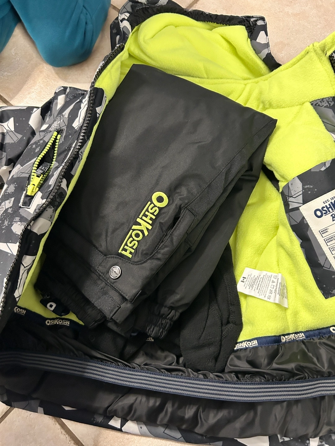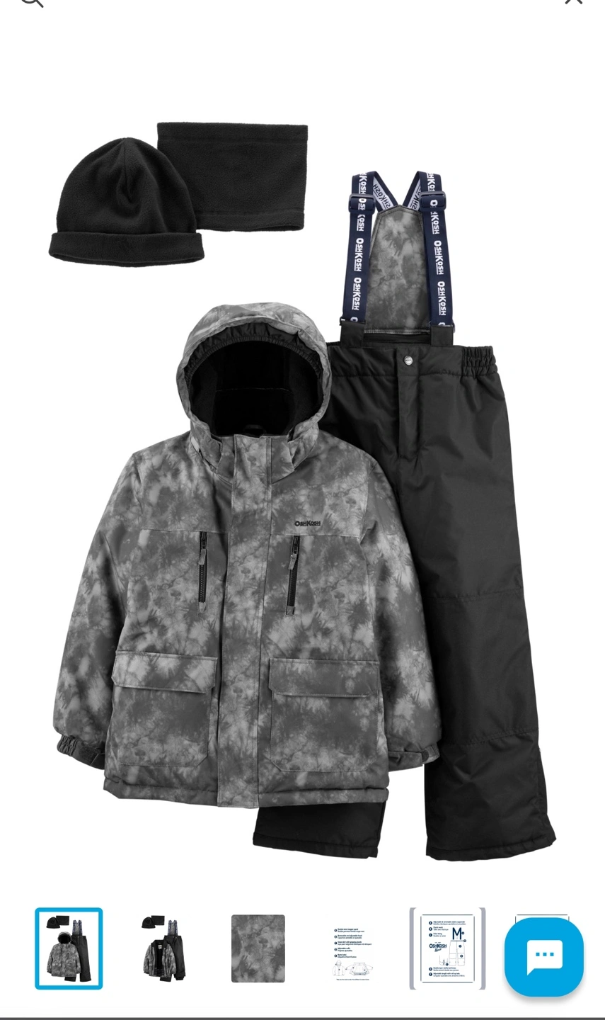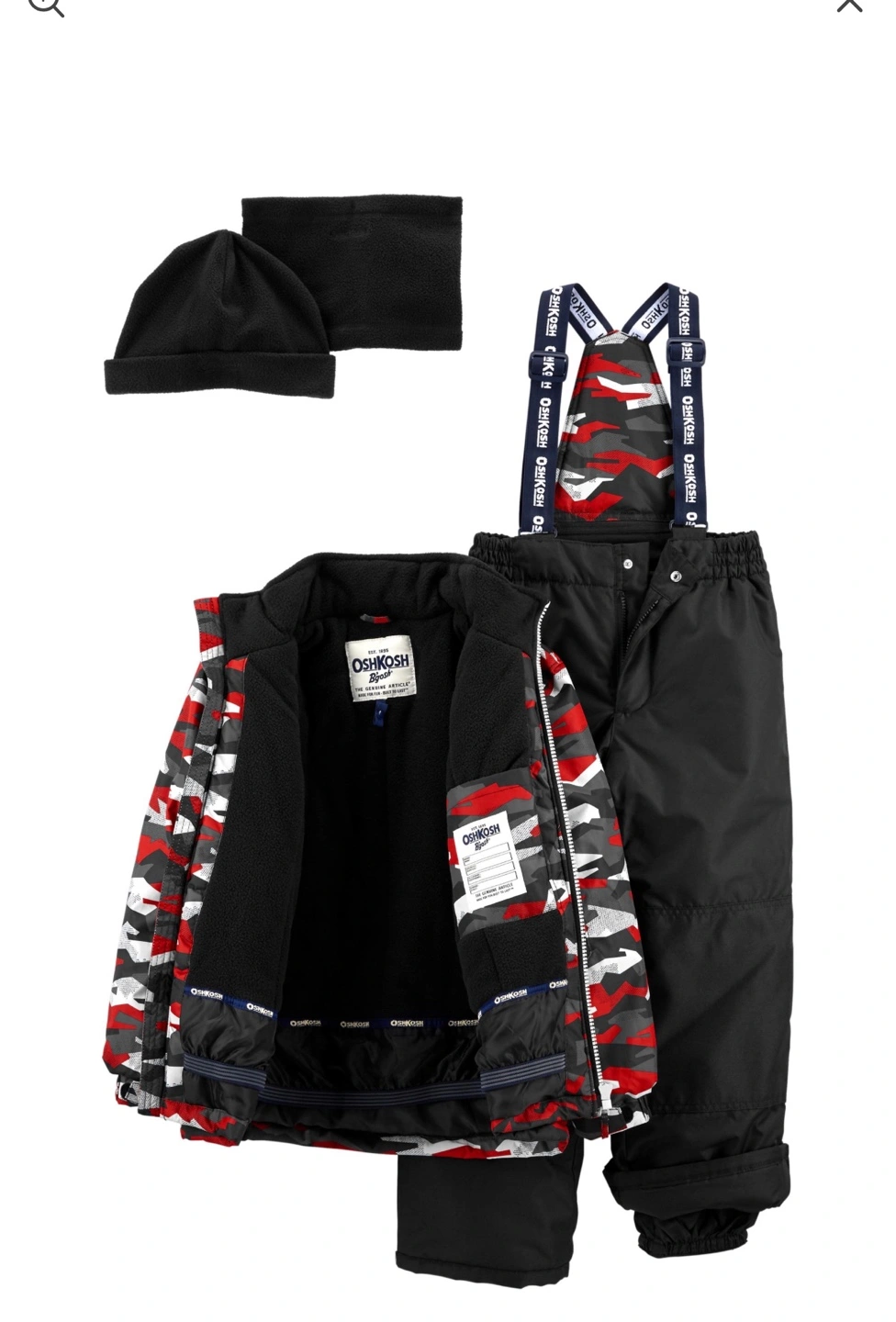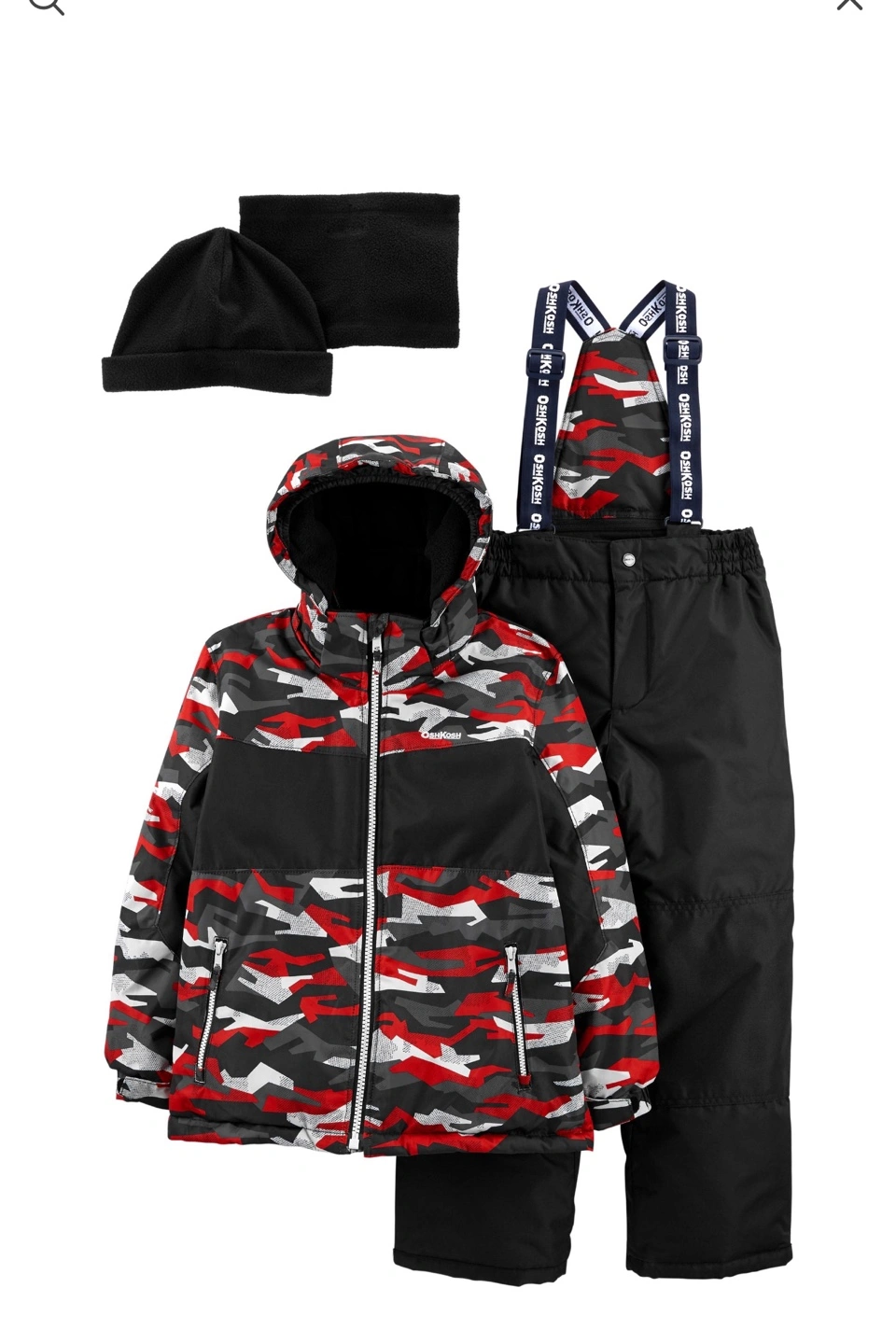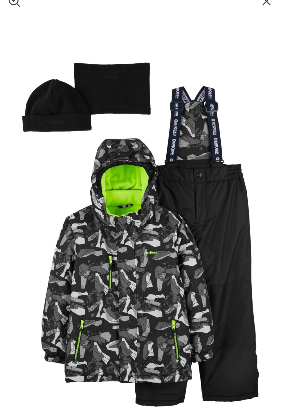 Kids snowsuit set, includes jacket,overalls, hat and neck warmer. brand new with tag! Carters original price is $140 plus tax