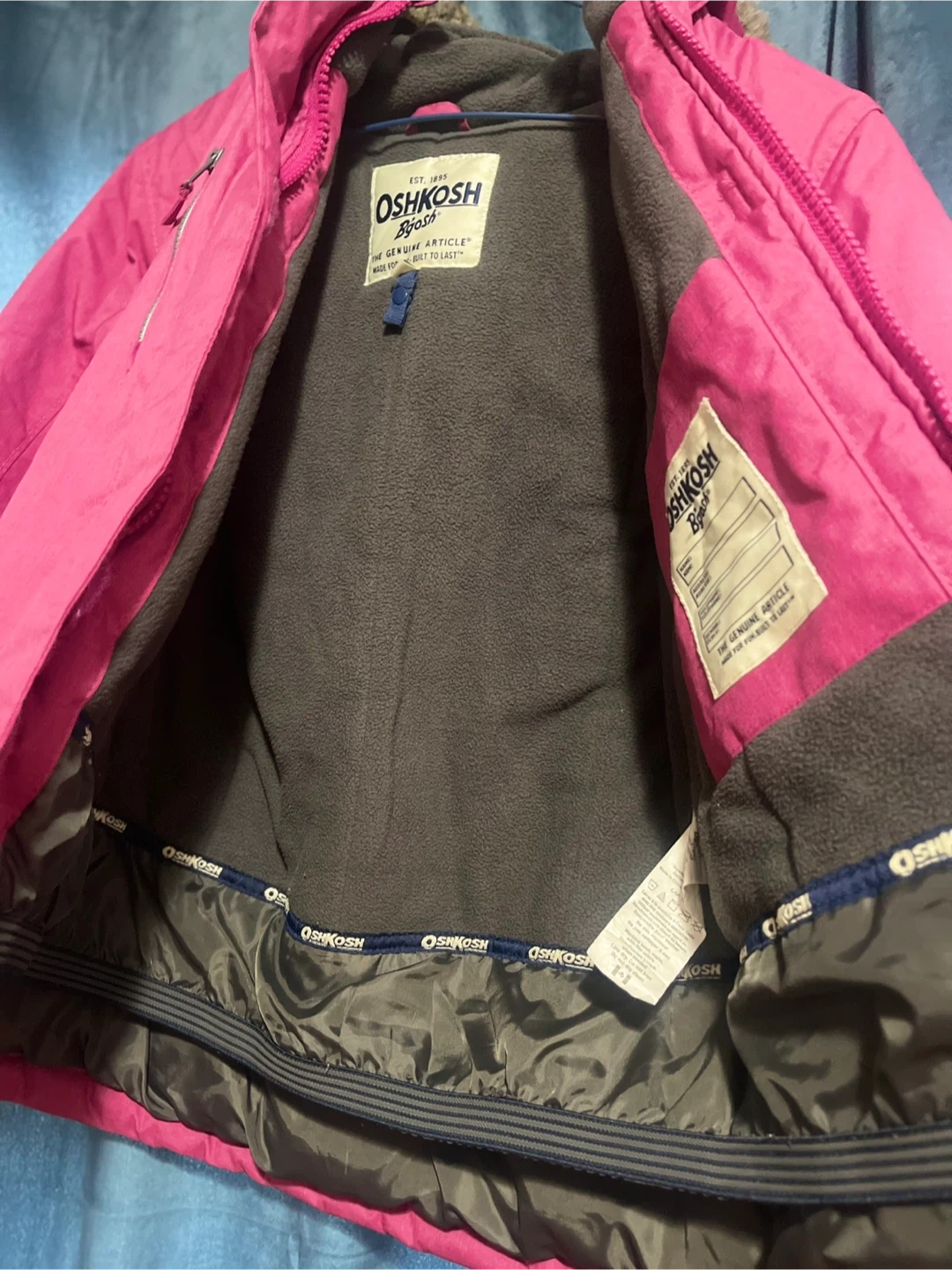 Cozy OshKosh B'gosh winter jacket in great condition! Perfect for keeping your little one warm during those chilly Canadian winters. It features a hood and a zipper.