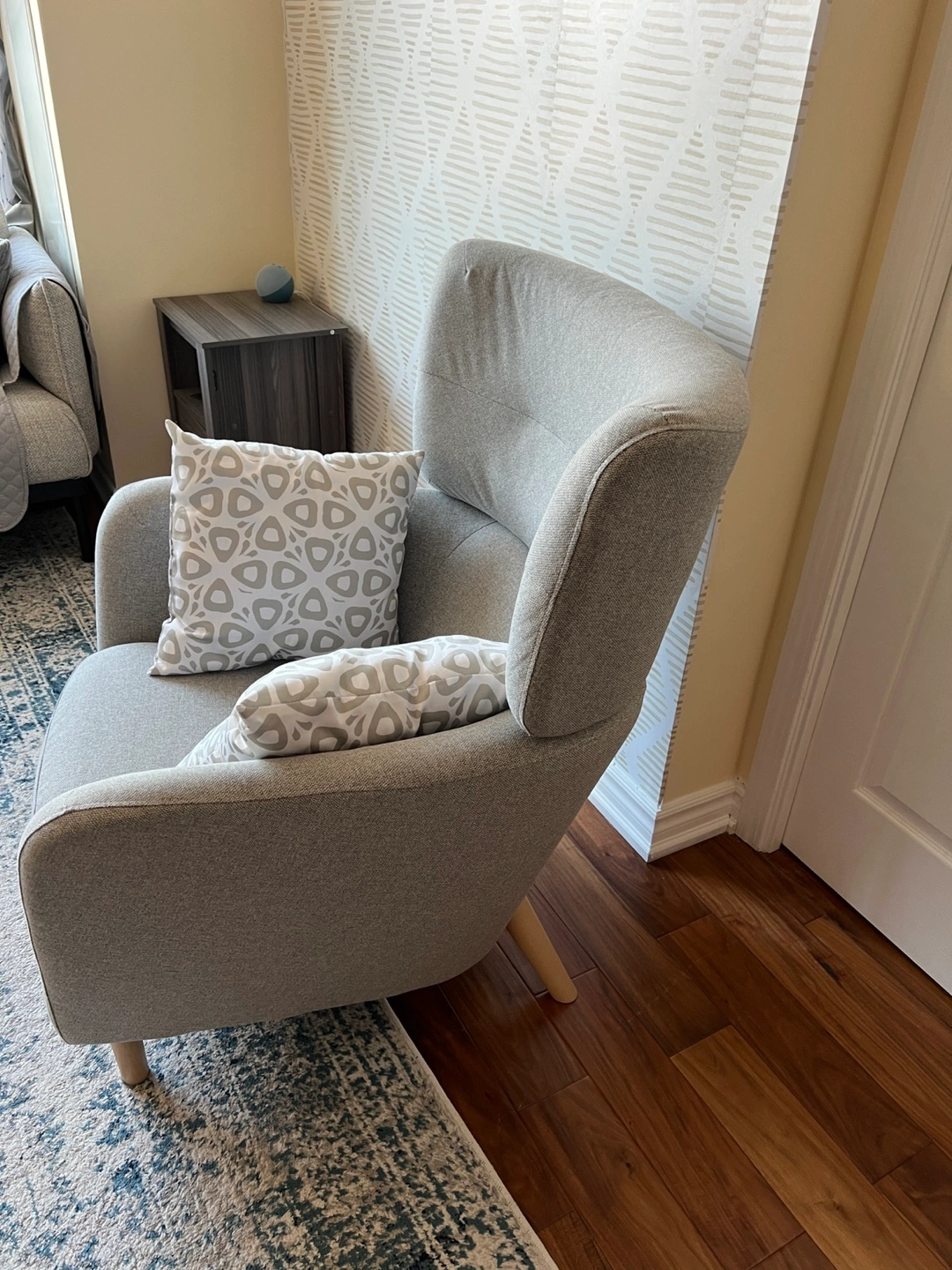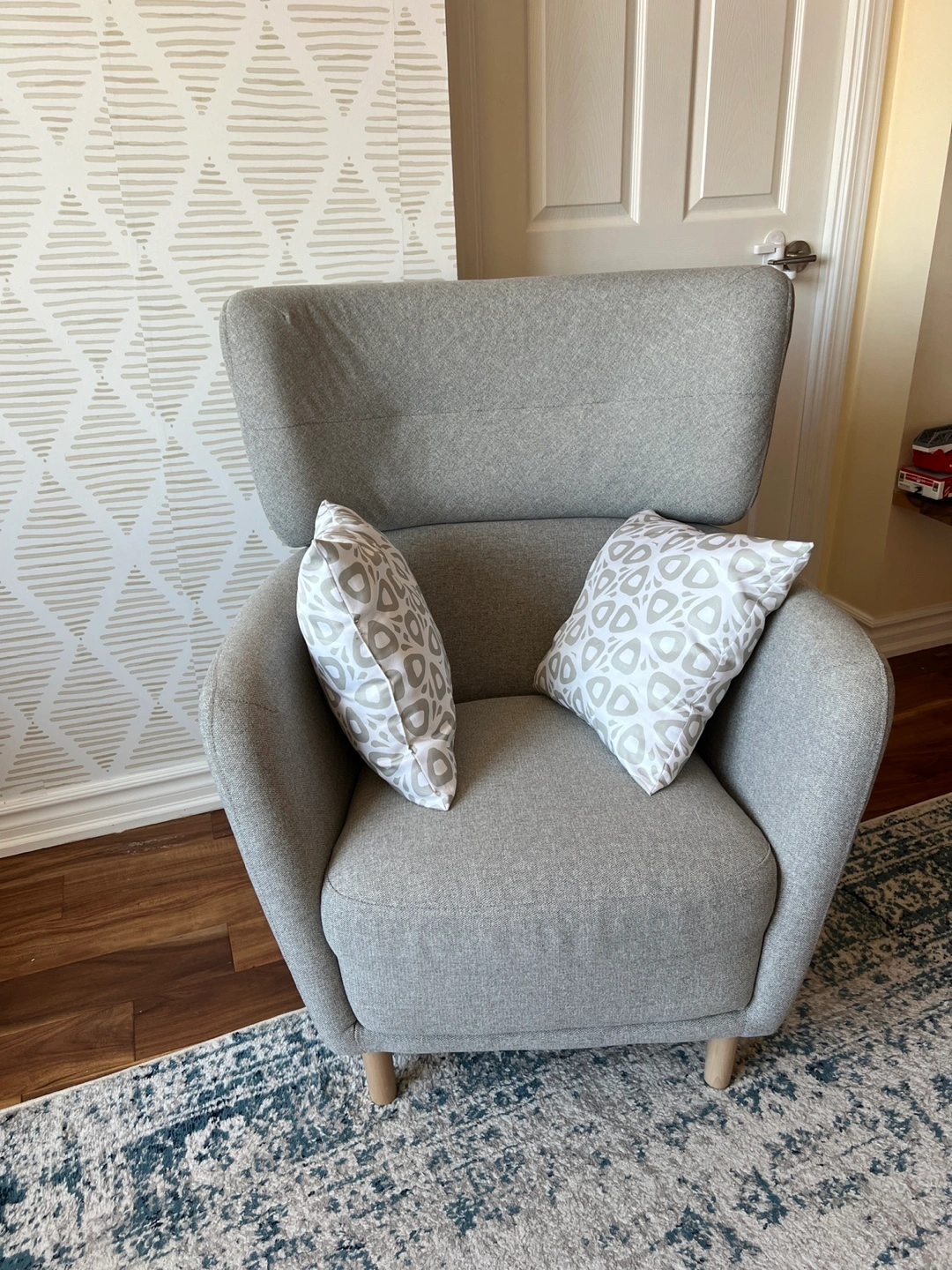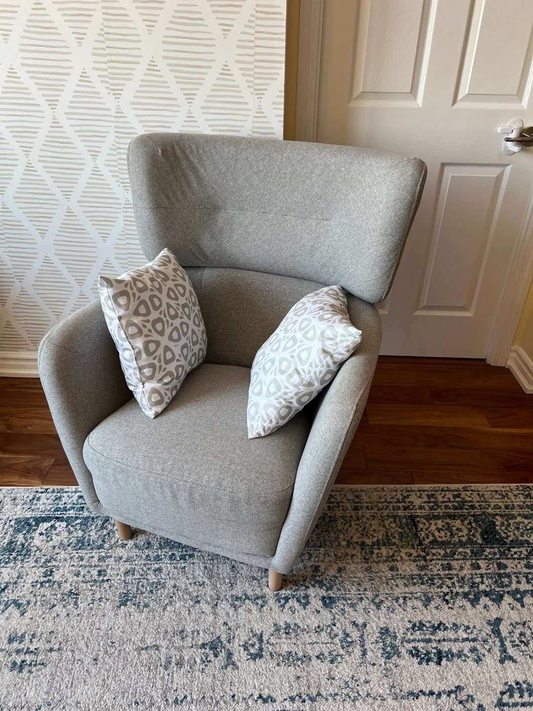 Comfortable IKEA Oskarshamn Armchair for Sale This cozy IKEA Oskarshamn armchair is in excellent condition, as it's been barely used. The gray color is versatile and will fit with many different decor styles. We're selling it because we're moving out of the country. You can find more details and dimensions on the official IKEA product page here. https://www.ikea.com/ca/en/p/oskarshamn-armchair-tibbleby-beige-gray-30523615/ The price is non-negotiable.