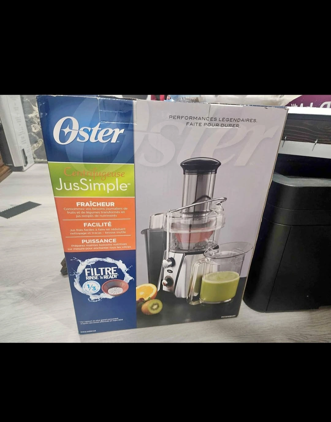 Selling an Oster JusSimple juicer! It's designed to make fresh juice easily with less cleaning and hassle. Enjoy nutritious drinks made from fruits and veggies right at home