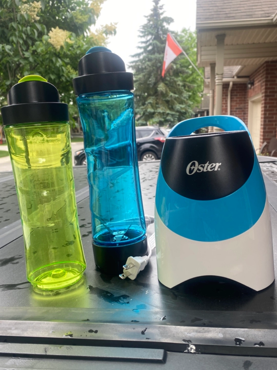 Selling new and never used an Oster personal blender that comes with two bottles! It's perfect for making smoothies or protein shakes on the go. The blender is in good condition and ready for a new home