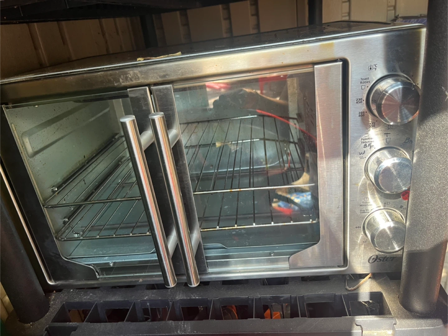 Gently used Oster toaster oven in good working condition. Perfect for small kitchens or quick meals! Features include toast, bake, and broil settings.
