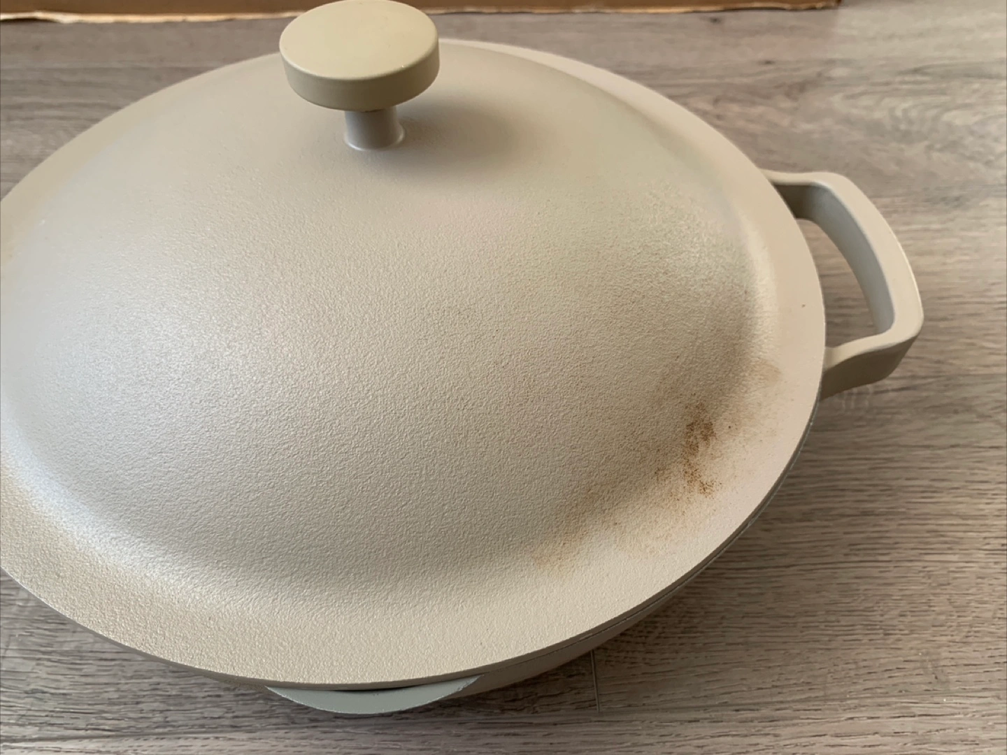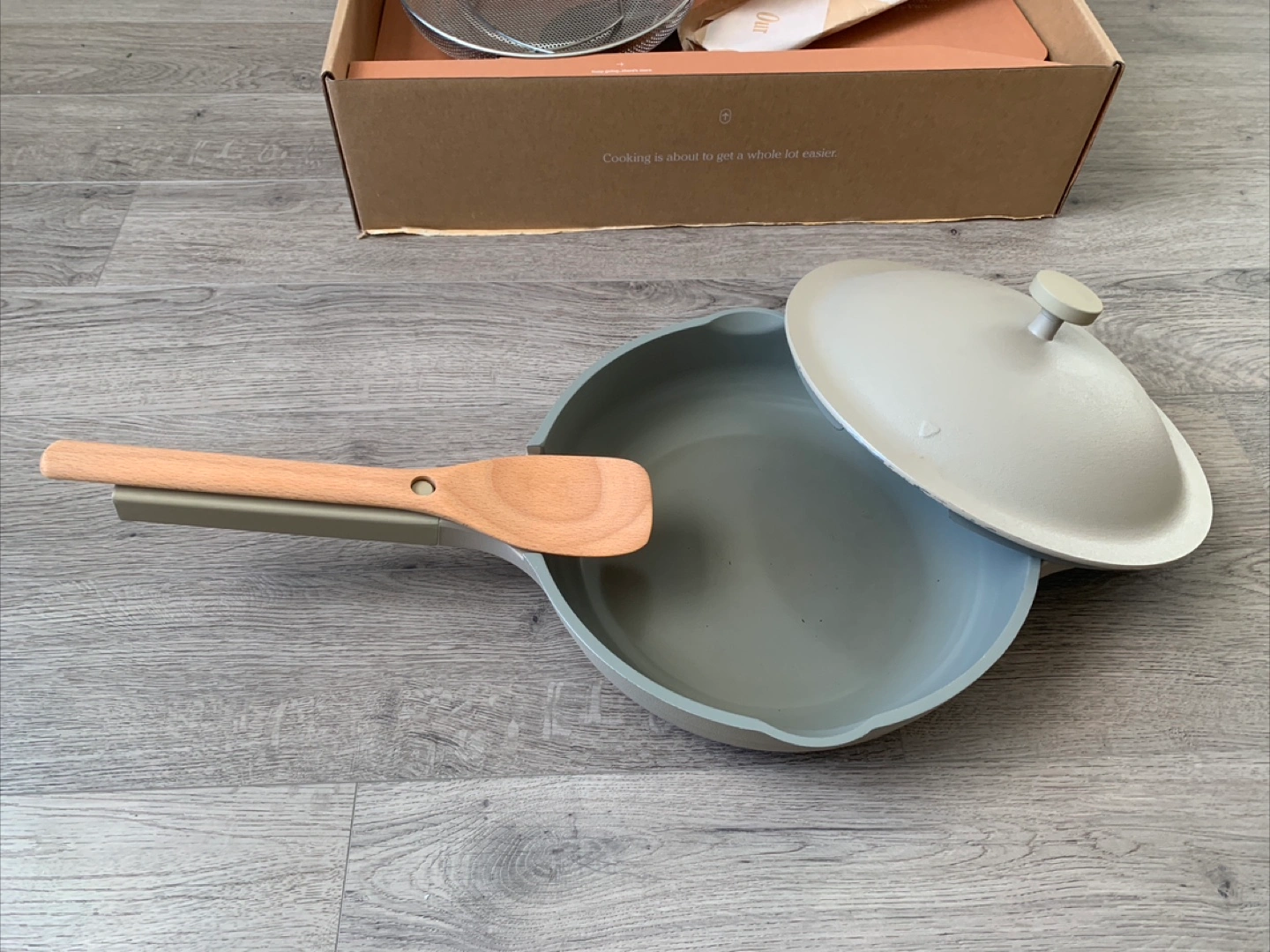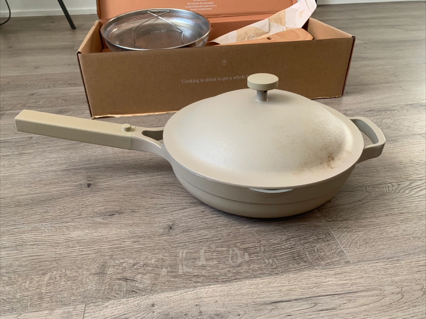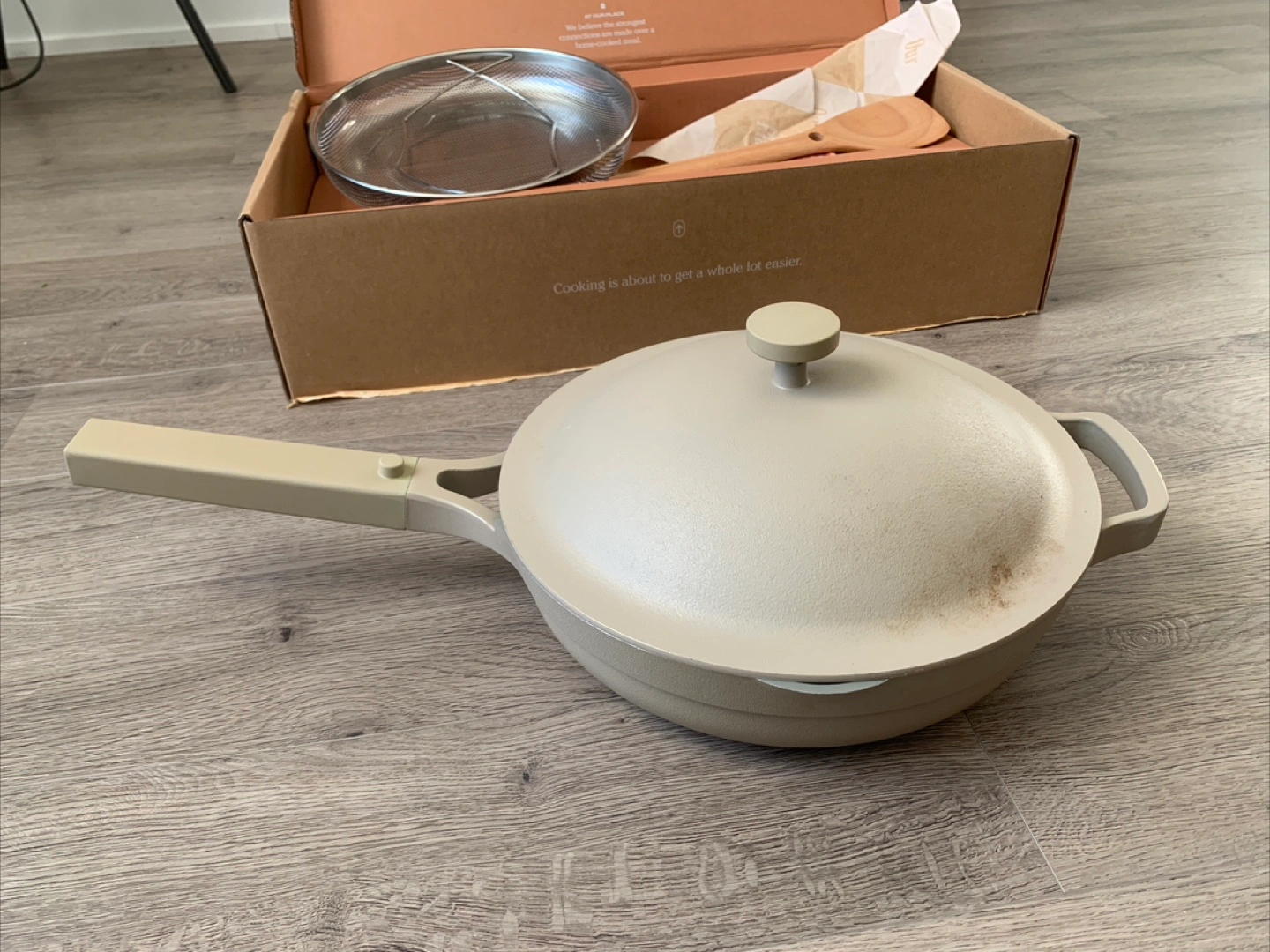 Selling an Our Place Always Pan in good condition! It comes with the steamer basket and wooden spatula. The original box is included as well. This pan is designed to replace 8 traditional pieces of cookware, making it a versatile addition to any kitchen ( # steamer basket and spatula is new )