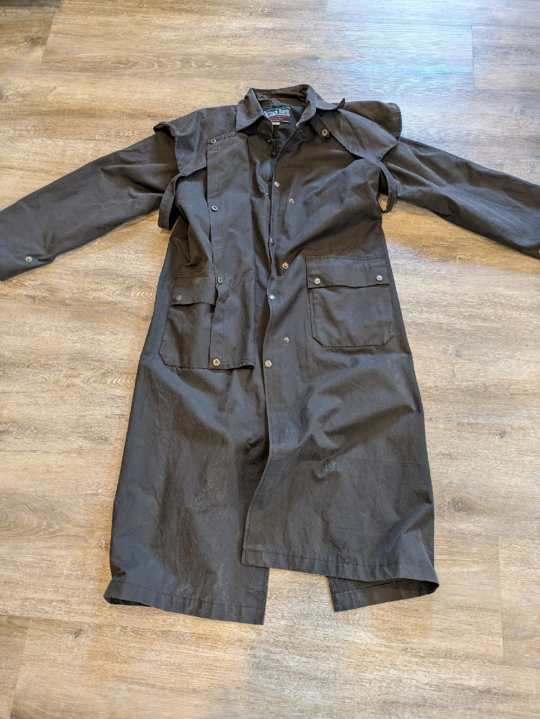 Selling an Outback Rider Australian Oilskin coat. It's a size small and in great condition. A classic and durable coat perfect for outdoor activities! Not really that small as l normally wear a Medium size and it fits me just fine. 5'10" , 160 lbs.