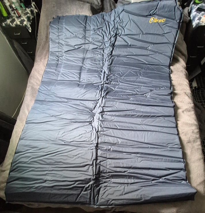 Selling an Outbound double-size self-inflating mattress. It's in great condition and perfect for camping or guests. Easy to inflate and deflate, and rolls up for compact storage!