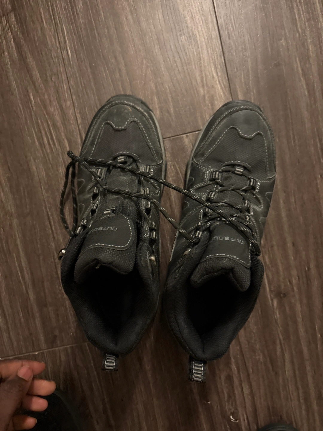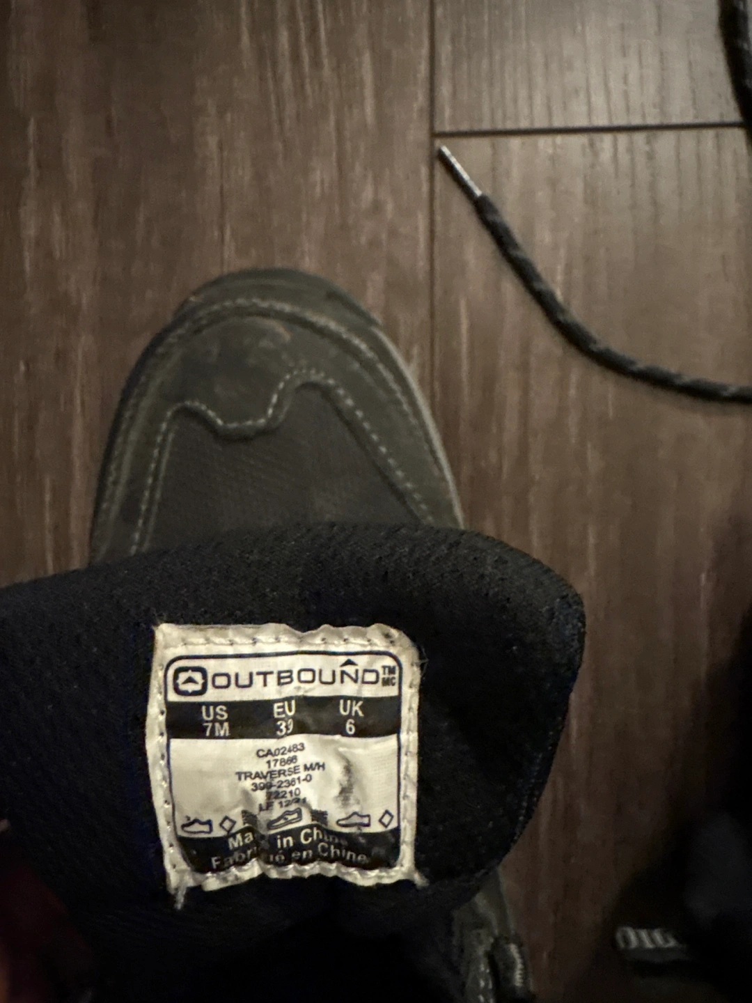 Selling a pair of Outbound hiking boots in men's size 7. They're in good condition and ready for your next outdoor adventure! The label shows US size 7, EU size 37, and UK size 6.