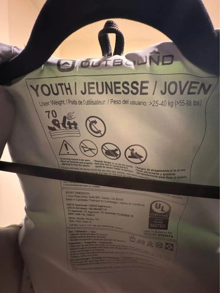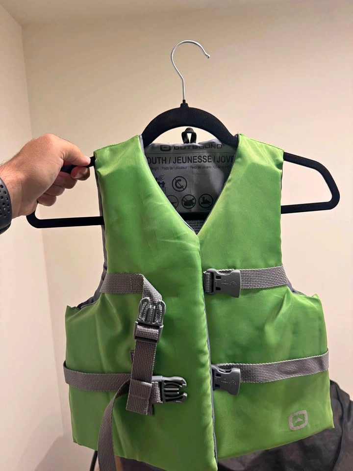 Selling a youth life jacket (Outbound brand) in mint condition. Worn only once — basically like new! Details: • Brand: Outbound • Size: Youth (fits 55–88 lbs / 25–40 kg) • Color: Green with grey straps • USCG Approved / UL Certified • Adjustable straps for a secure and comfortable fit • Lightweight, safe, and durable ✨ Why You’ll Love It • Perfect for boating, kayaking, swimming, or any water activity • Trusted safety certification (USCG / UL) • Worn only once → like new condition • Reliable gear to keep kids safe on the water 📍 Pickup at 16th & Kingsway (Burnaby).