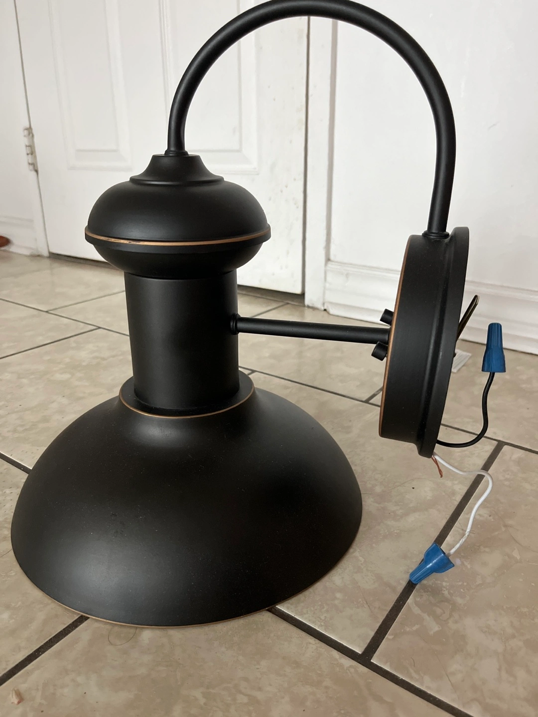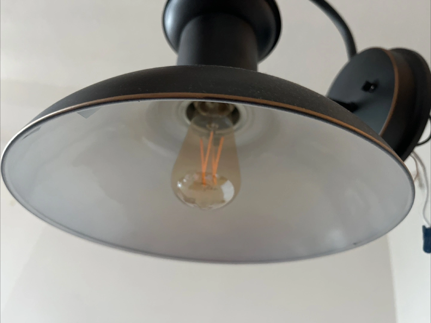 Selling a stylish outdoor barn light fixture in matte black! It's in great shape and ready to brighten up your porch or patio. The model number is 44539, and it's designed for wet locations. It operates at 120V~60Hz E26 Type A. Perfect for adding a touch of rustic charm to your outdoor space