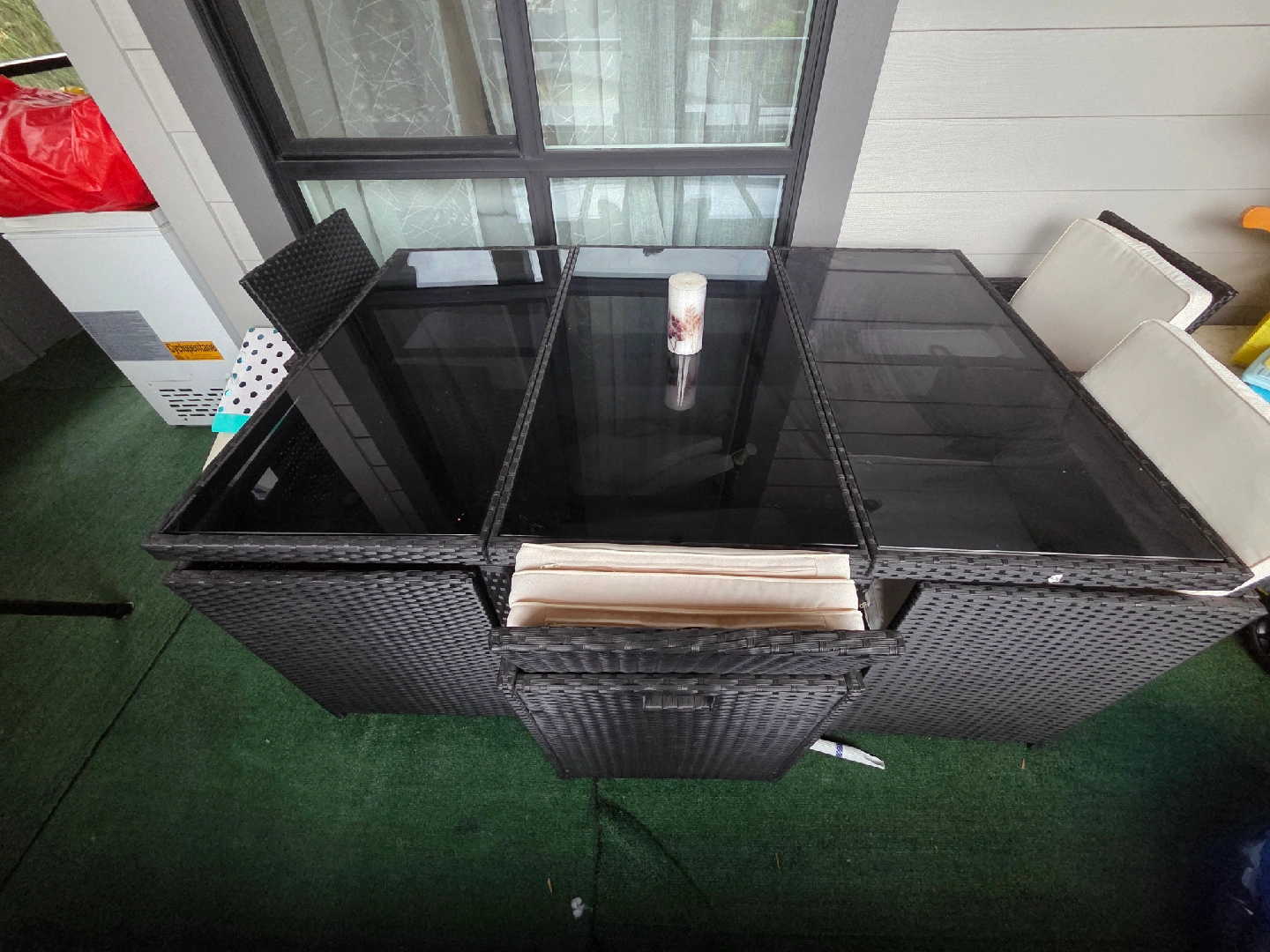 Glass Dining Table with 4 White Chairs