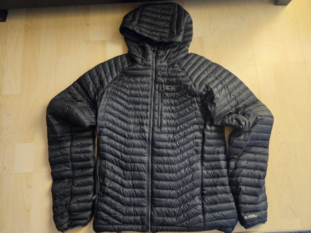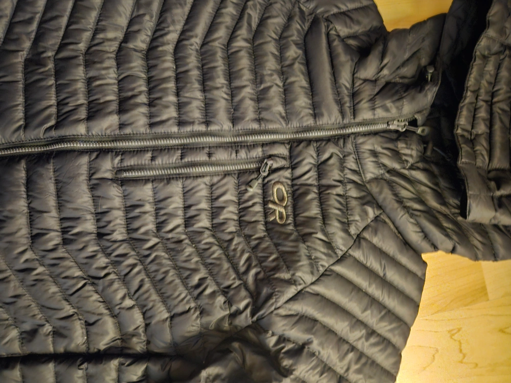 Selling a gently used Outdoor Research down puffer jacket in size small. It's black and has a hood. No rips or tears of any kind. Excellent condition.