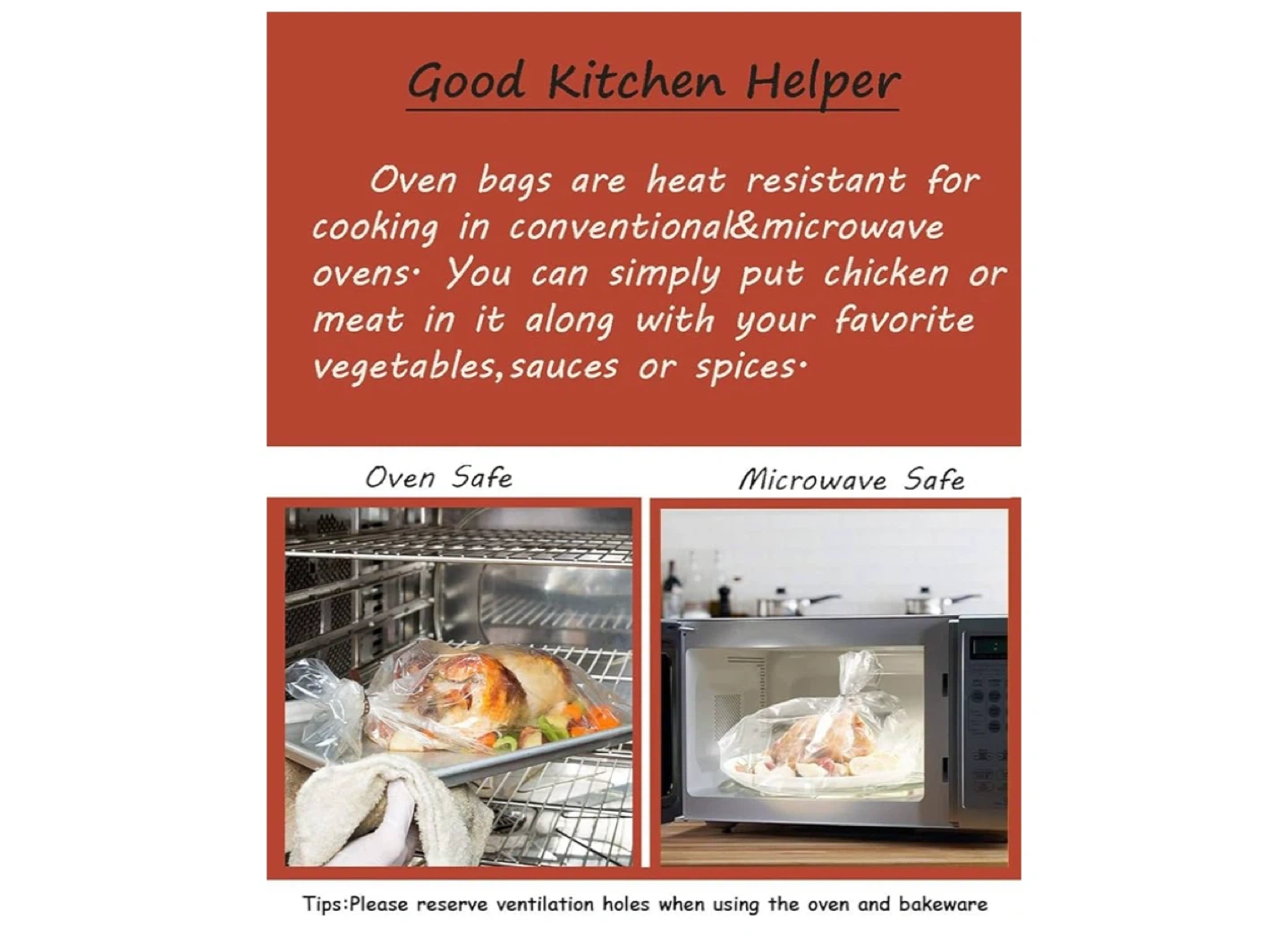 Get ready to roast with these oven bags! They're heat resistant and perfect for cooking in conventional or microwave ovens. You can use them for chicken, beef, seafood, or vegetables. Each bag is 25 x 38 cm, and there are 20 in the pack Meet up & cash only pls
