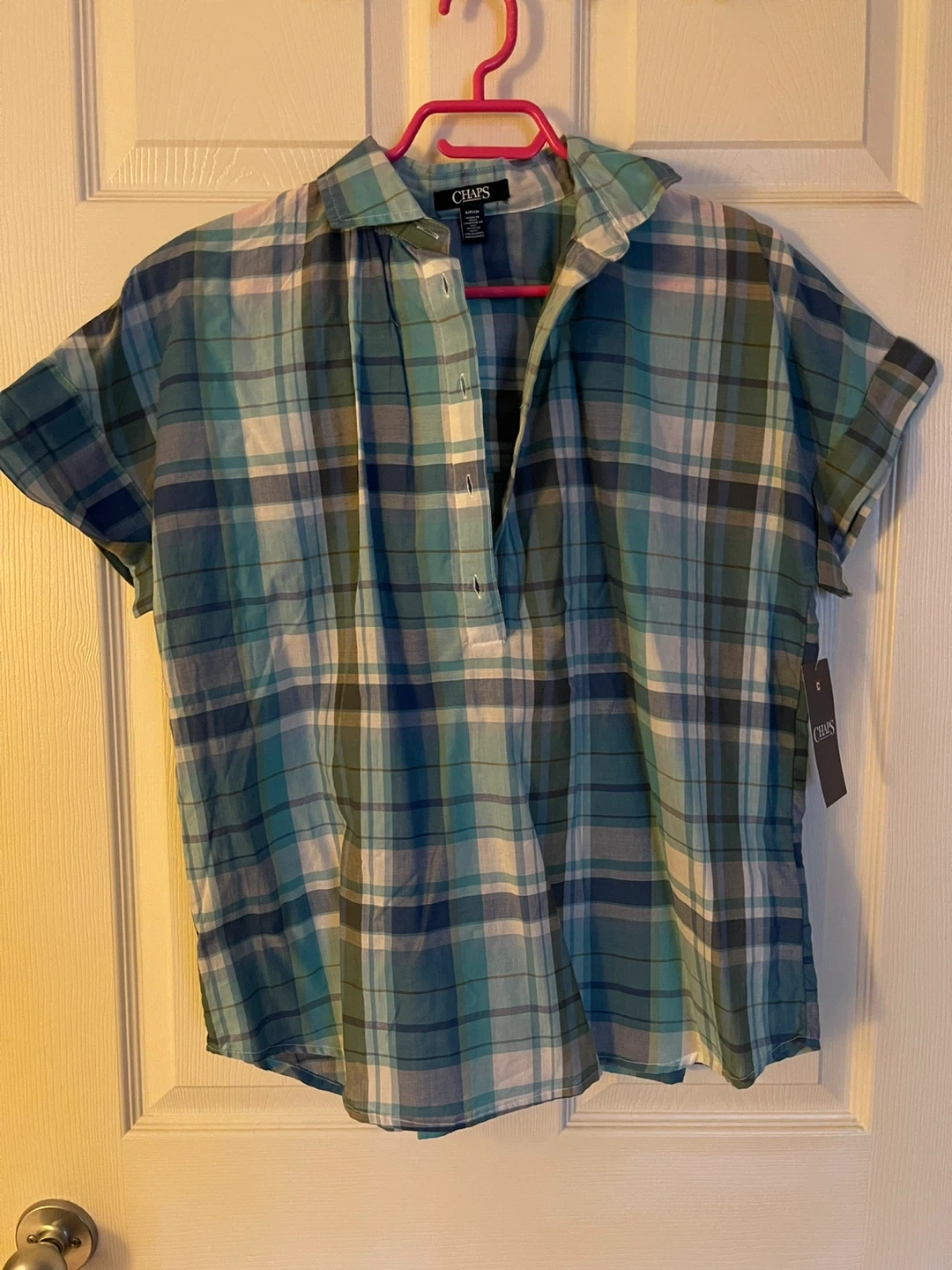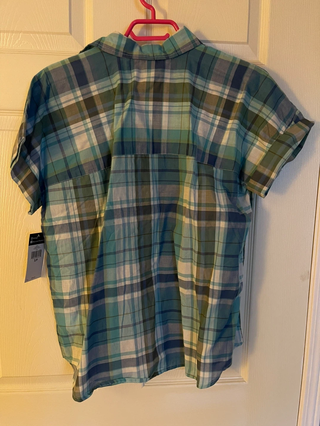 ⭐️ Oversized shirt, half button down ⭐️ Blue and aqua colour ⭐️ Size small (fits like medium/ large) ⭐️ New with tags ⭐️ Pick up only and cash only