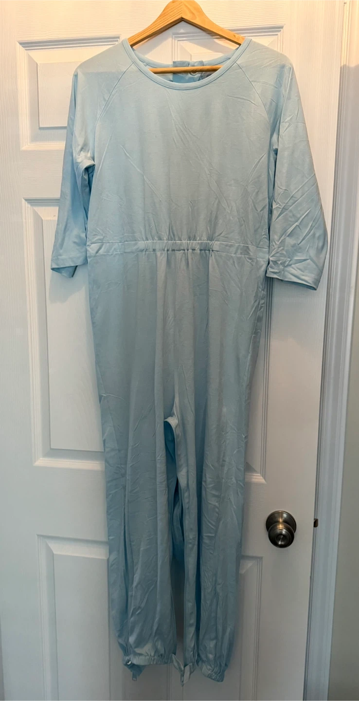 Selling a gently used Ovidis Dementia Anti-Strip Jumpsuit in a refreshing mint green colour! Also available in pink, blue and yellow! It features a back-zipper for convenience and is designed for elderly women. This jumpsuit offers comfort and ease of wear. Perfect for anyone seeking a practical and comfortable clothing option $55 each Buy the lot for further discount