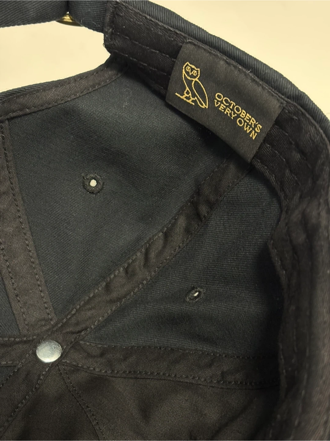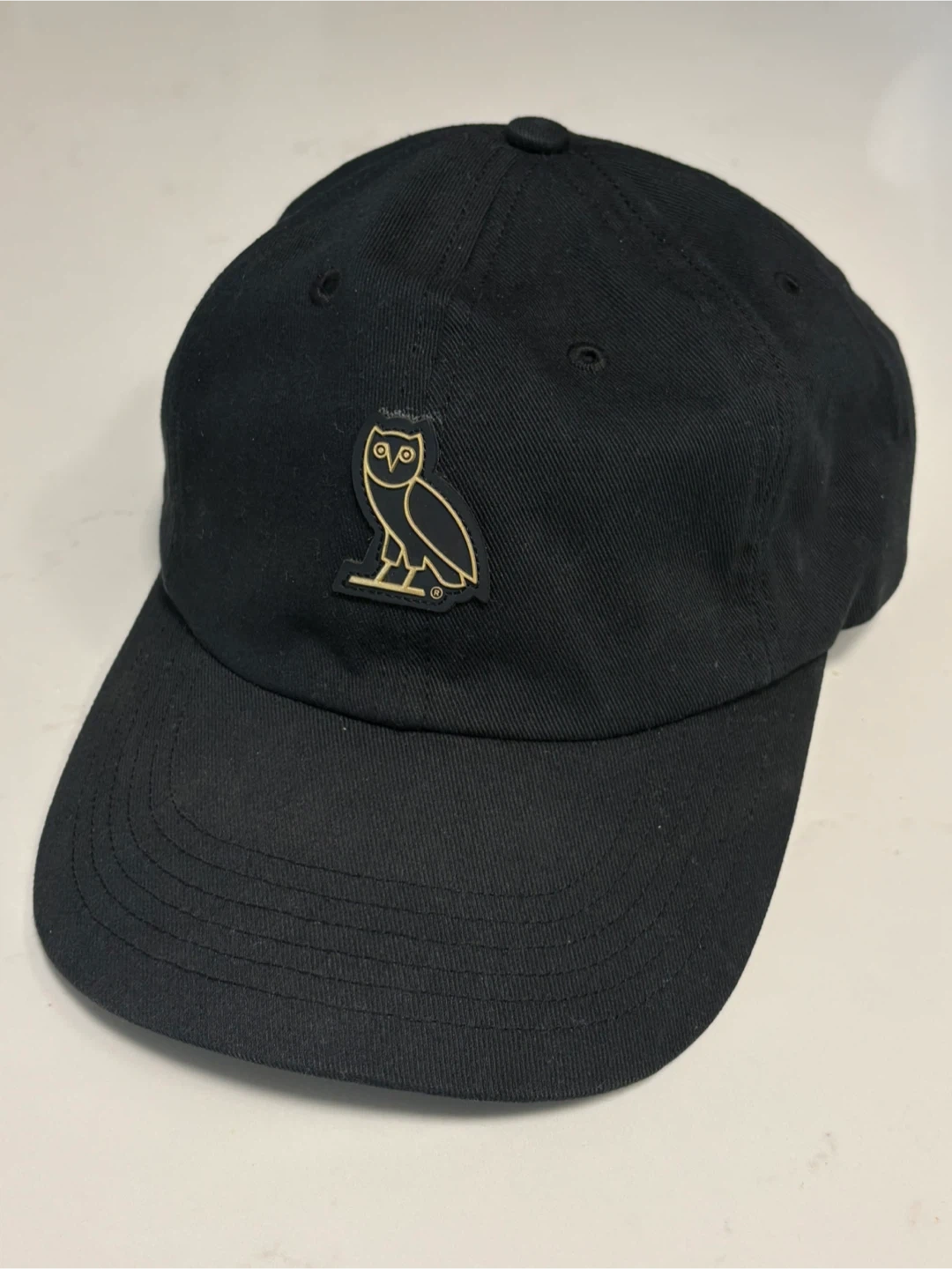 Selling a black OVO cap. It's in great condition and features the iconic owl logo. Perfect for any fan!