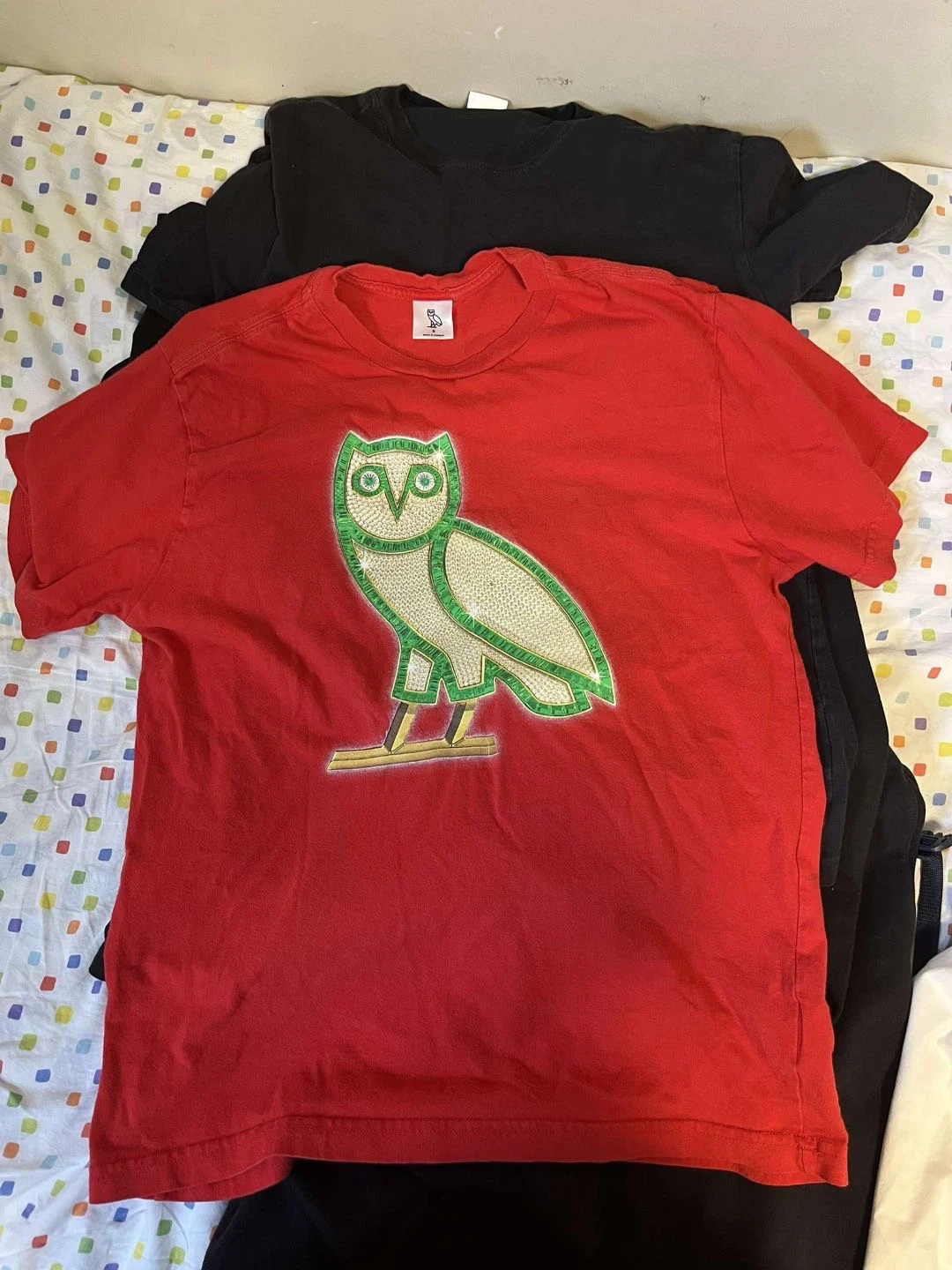 Selling a red OVO t-shirt with the classic owl logo on the front If interested text: 613-762-3810