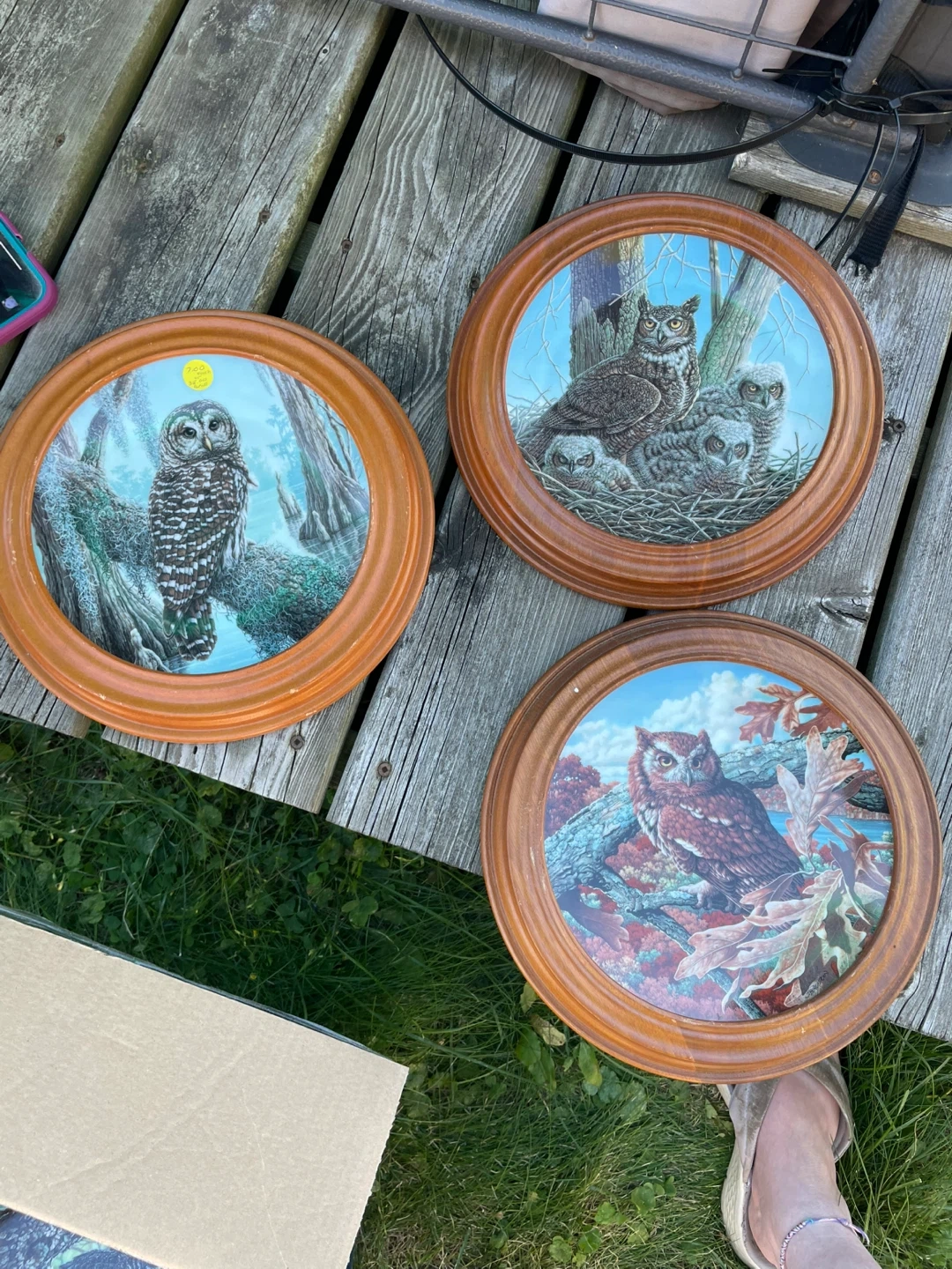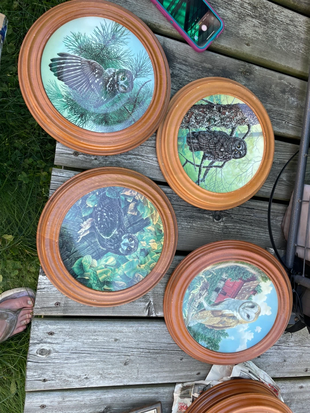 Selling a collection of decorative owl plates. They're in great condition and would look lovely on any wall. Each plate features a different owl design, adding a touch of nature to your home. Perfect for owl enthusiasts!
