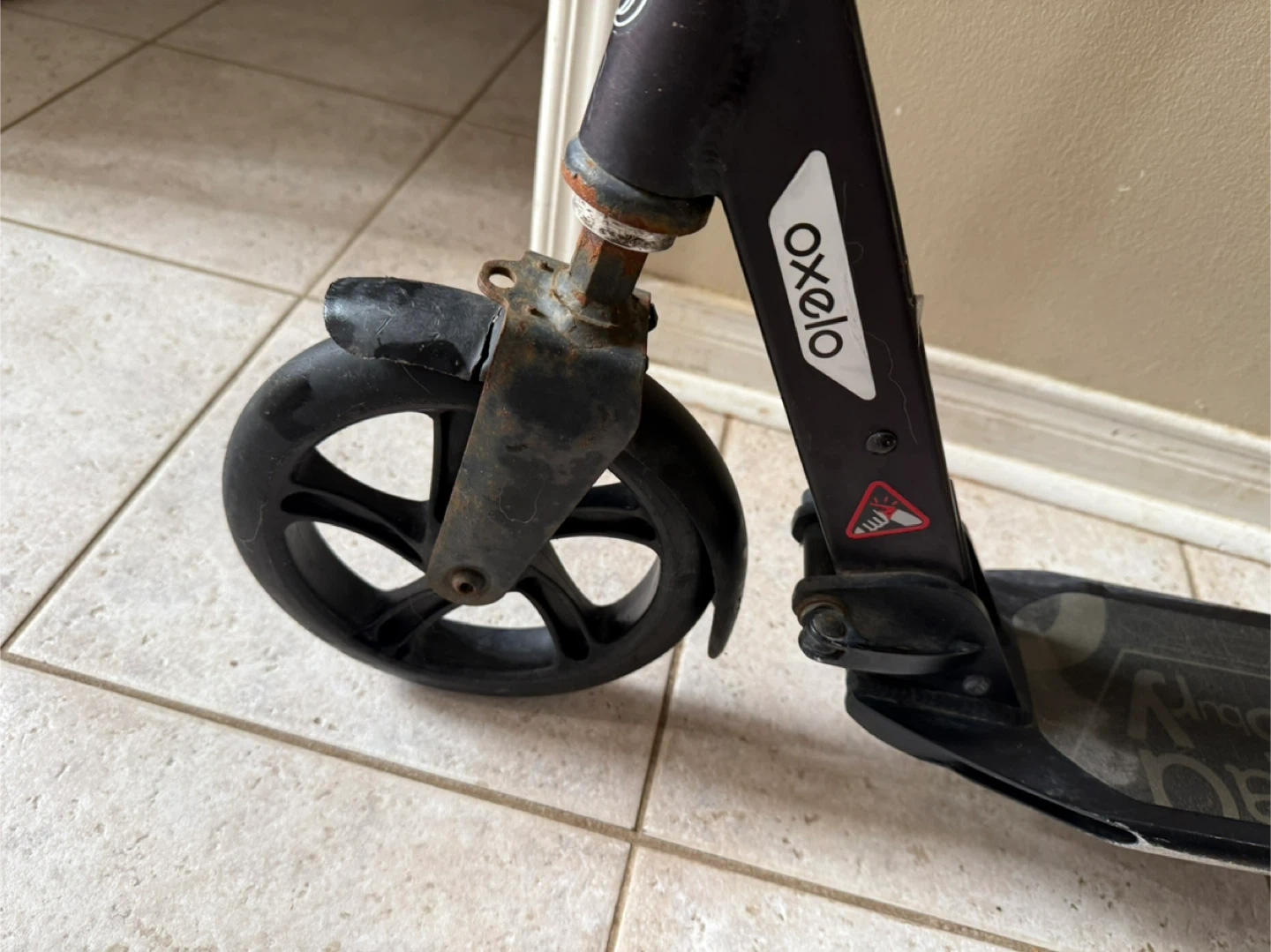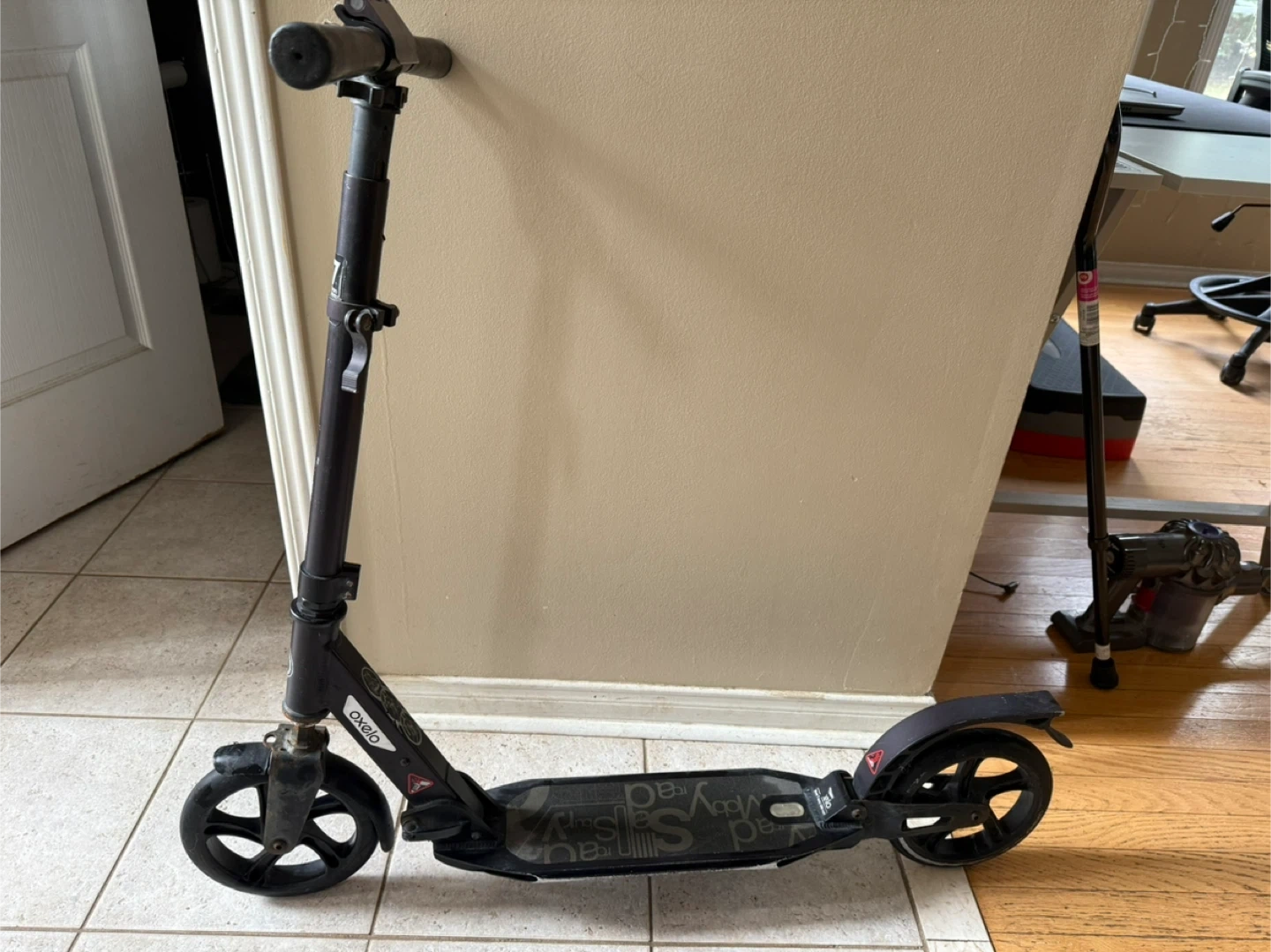 Selling an Oxelo Town 7 EF scooter in black! It's in good used condition and ready for a new owner. Great for getting around town or just having some fun