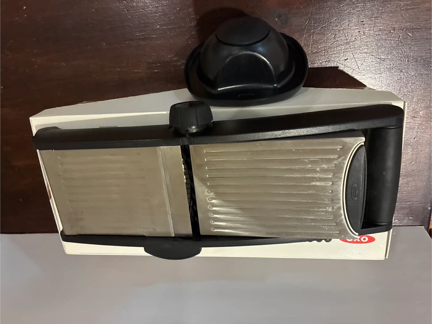 I'm selling an OXO Good Grips mandoline slicer. It comes with the box. This handy kitchen tool will make slicing vegetables a breeze
