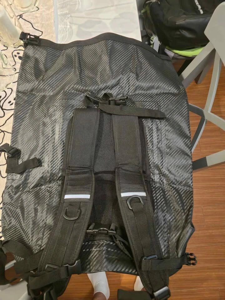 We've designed the dry sack waterproof bag for maximum comfort during long hours of wear. The ergonomic padded back panel, reinforced contoured shoulder straps, and adjustable chest strap help distribute the weight evenly and take pressure off your back. Additionally, the heavy-duty waist belt provides extra support and relieves added pressure. The backpack dry bag also features breathable mesh shoulder pads and a reflective strip for safe riding or walking at night. Our floating dry backpack 's roll-top closure and additional layer of clear PVC at the top make it easy to achieve airtight and enhance its waterproof capabilities. Simply fold the waterproof drybag down 3-4 times, buckle it up, and you're ready to go! The cylindrical shape of the bag even allows it to float on water, making it potentially life-saving in emergency situations.