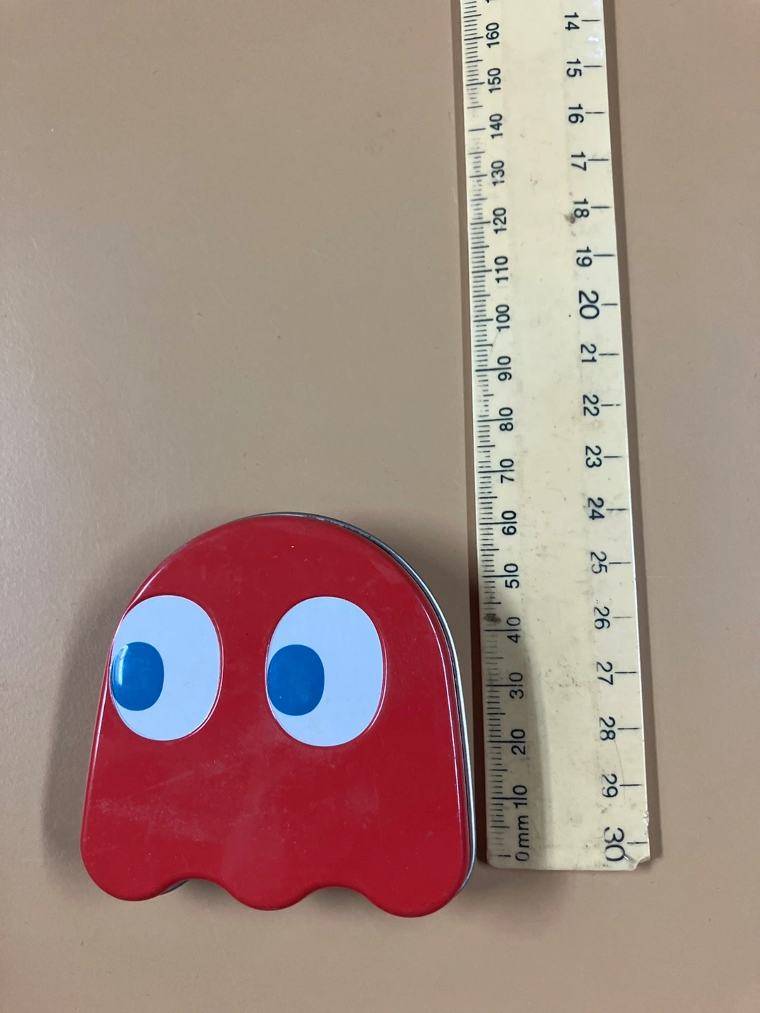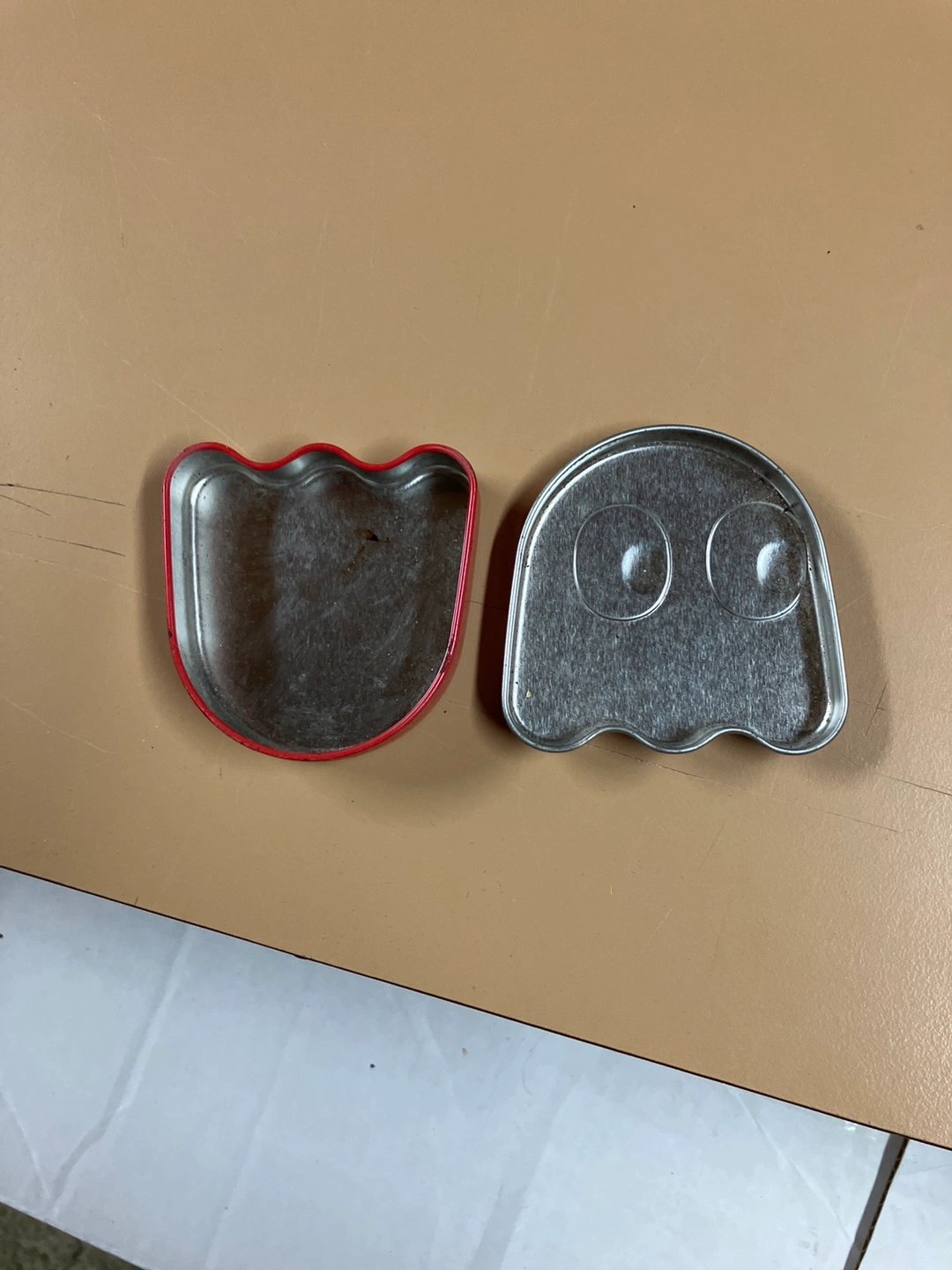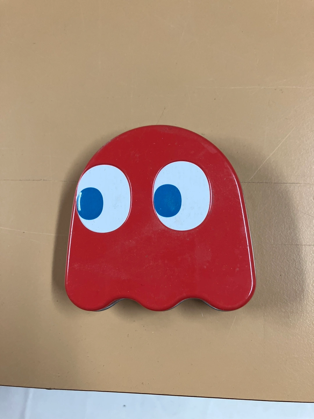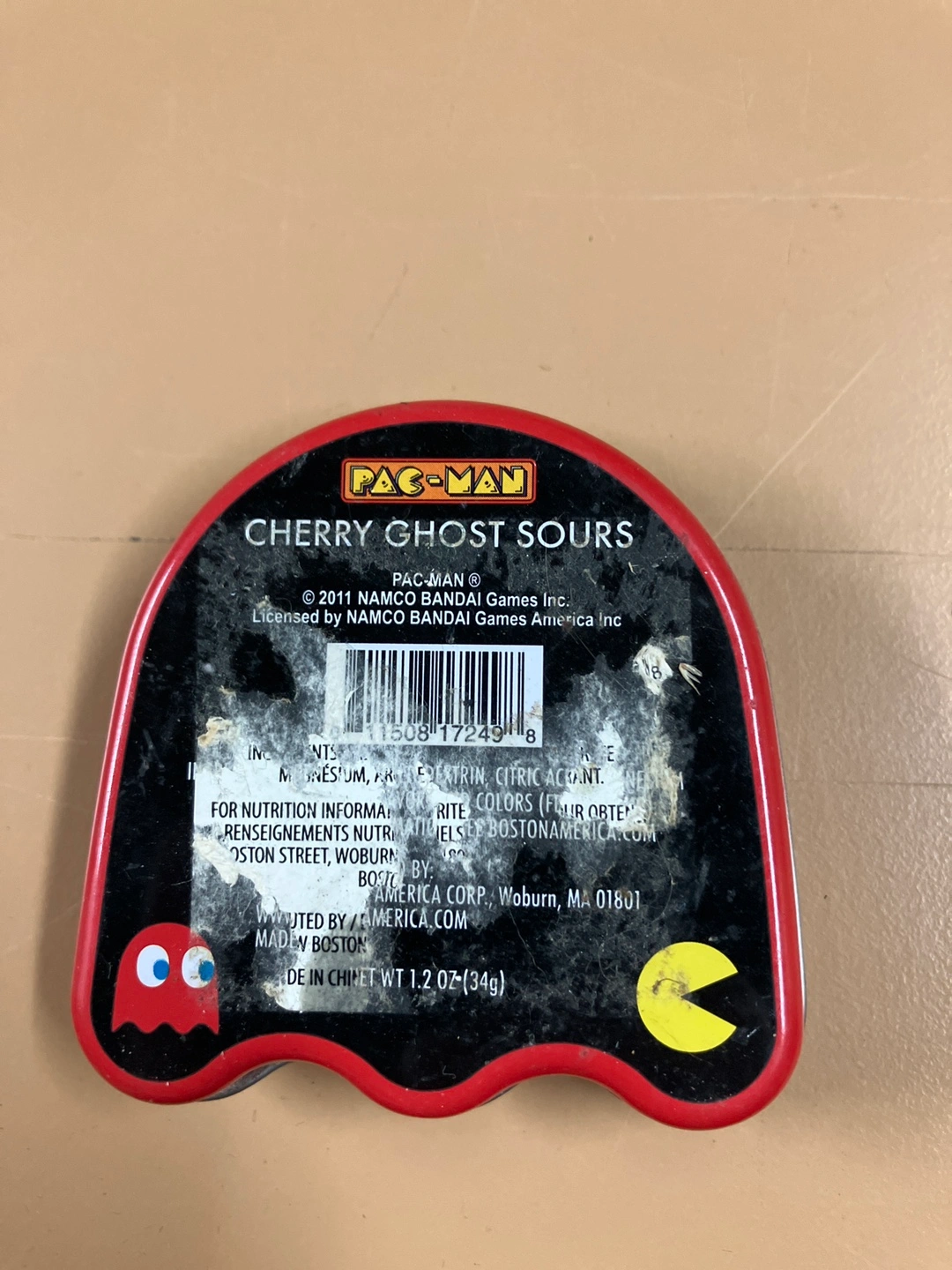 Selling a cute Pac-Man Cherry Ghost Sours candy tin! It's in good shape and ready for a new home. Perfect for collectors or anyone who loves a bit of retro fun!