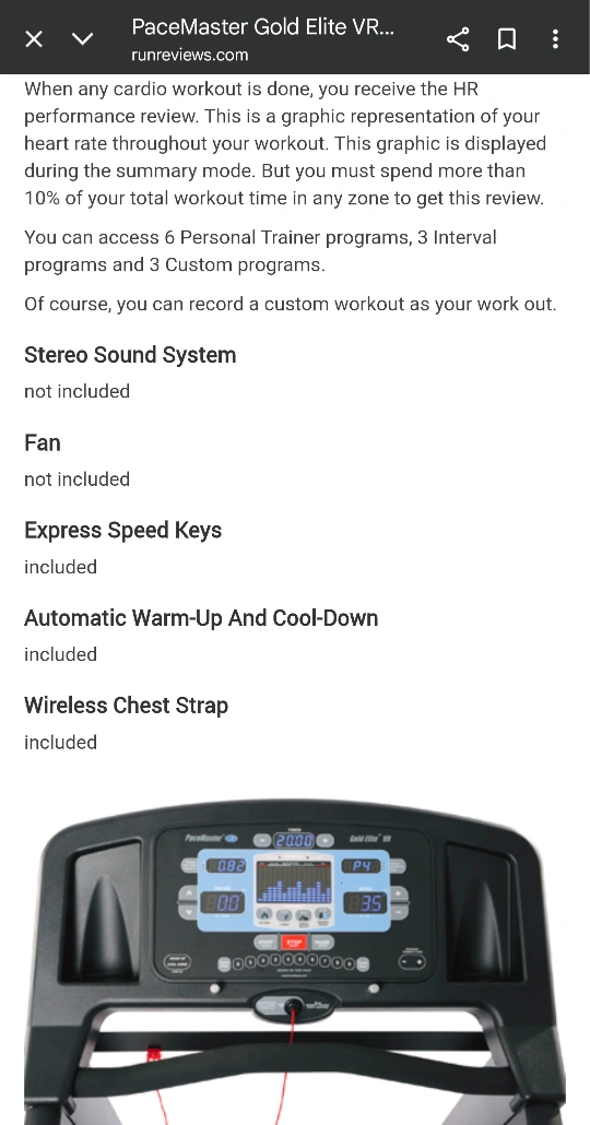 High end treadmill with a wide assortment of features. Screenshots of product review from run reviews.com list the original retail price as the only draw back! Unit needs a wipe down from being in storage and some basic assembly hardware (nuts and bolts you can get them from Home Depot). I plugged it in about a month ago and everything works, but haven't had a chance to give it a proper test run so the unit is being sold 'as is'; I'm selling it in good faith but cannot make any promises. Pick up only (bring muscles, the base weighs a ton!)