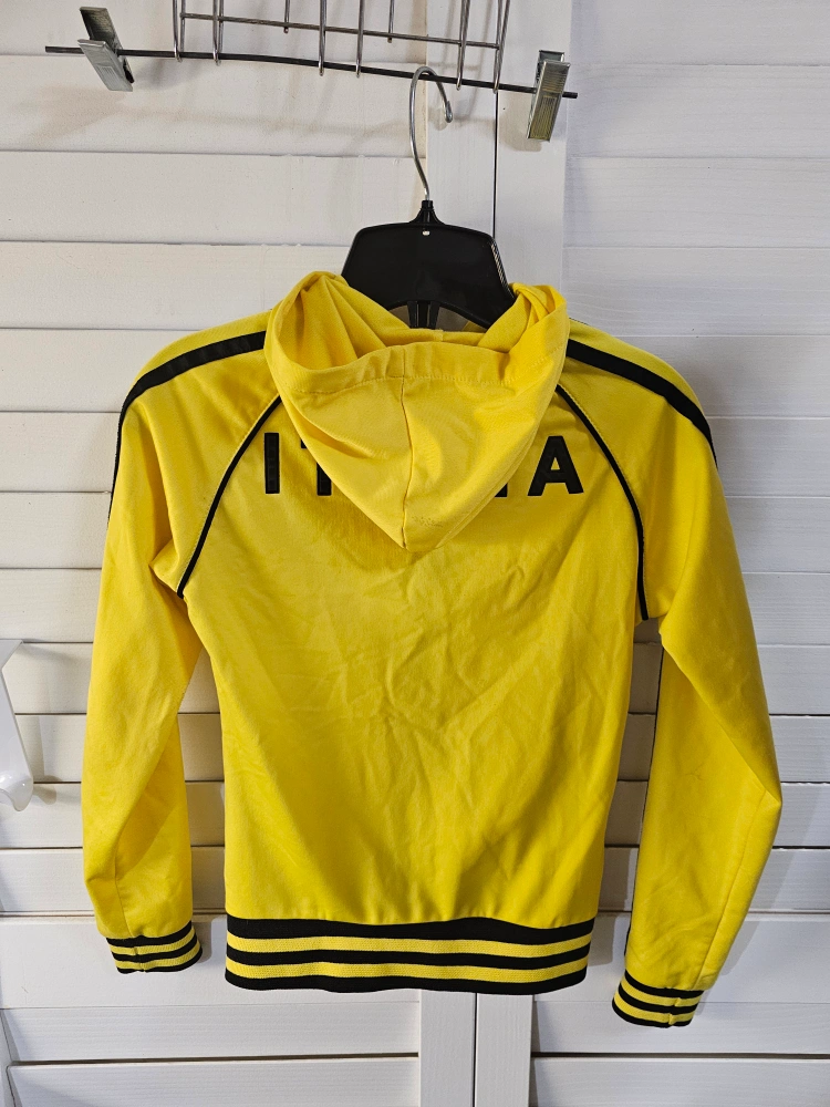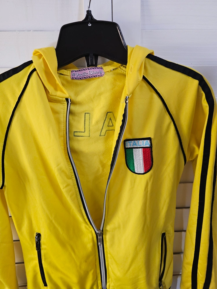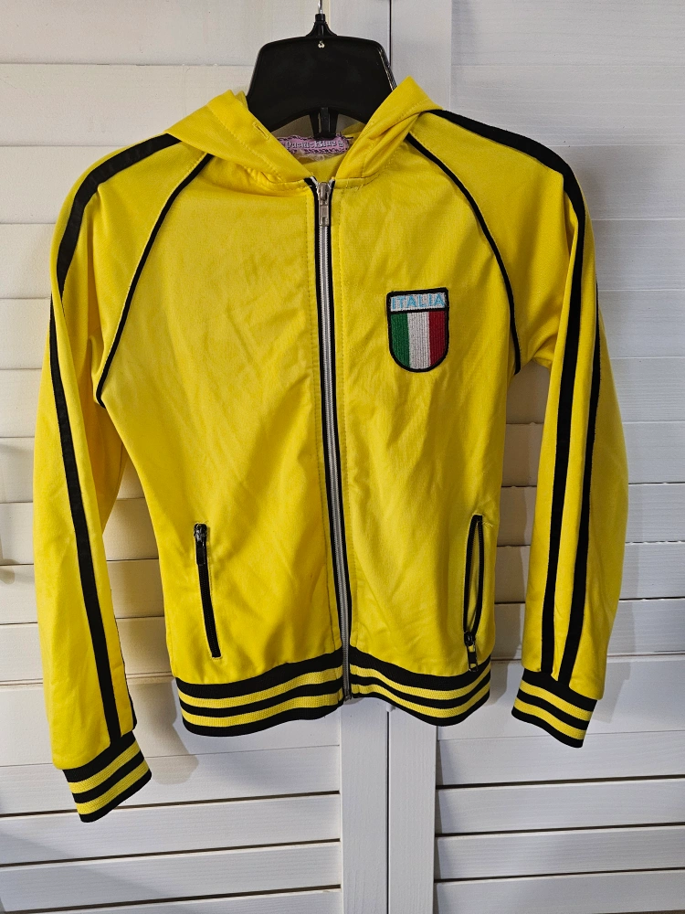 Yellow track jacket with black stripes and an Italia logo.