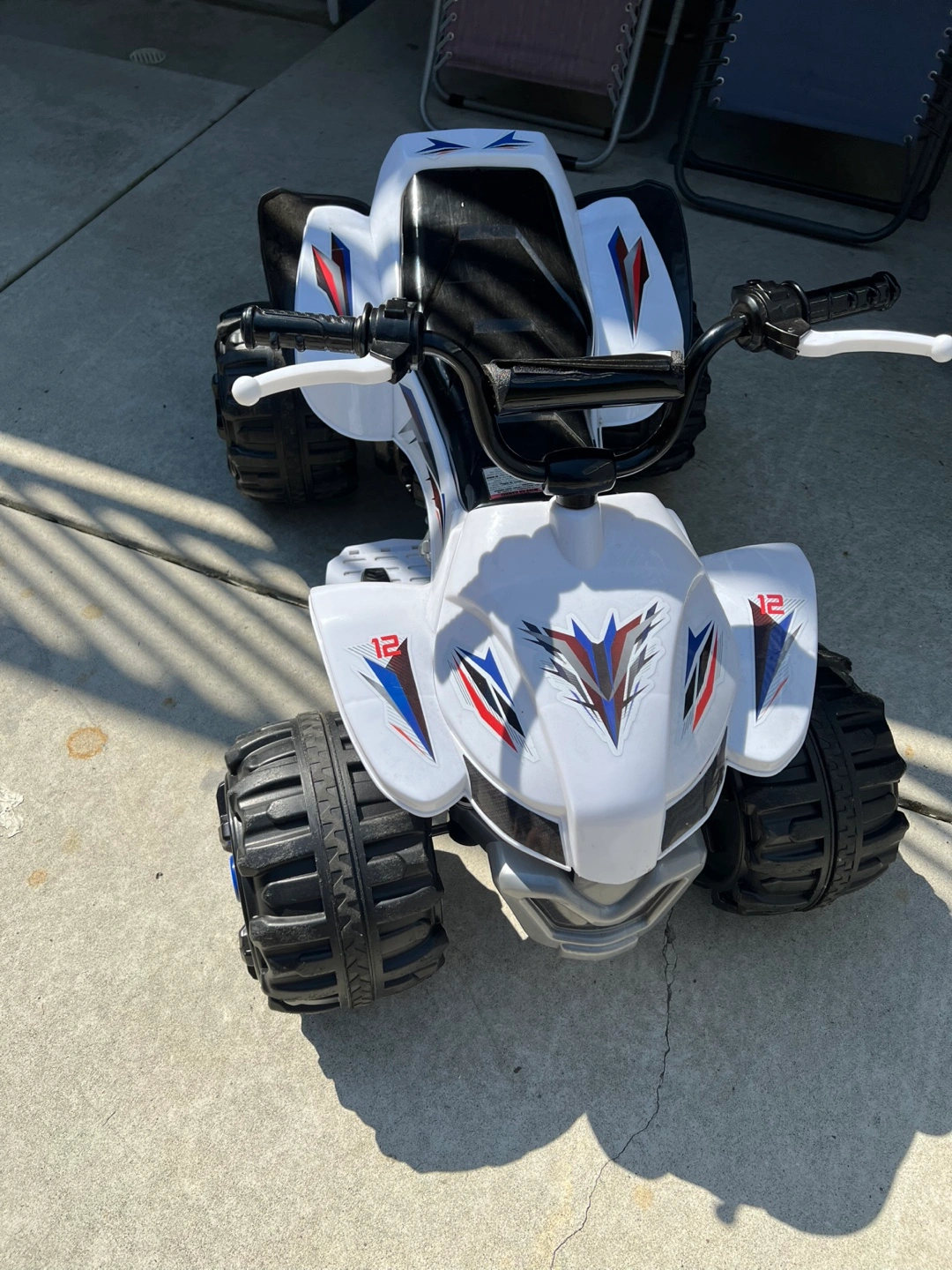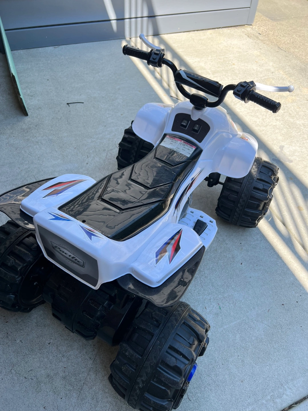 Selling a Pacific Cycle kids' ATV ride-on toy in white! It's in great condition and ready for some fun adventures. Perfect for little ones who love to explore!