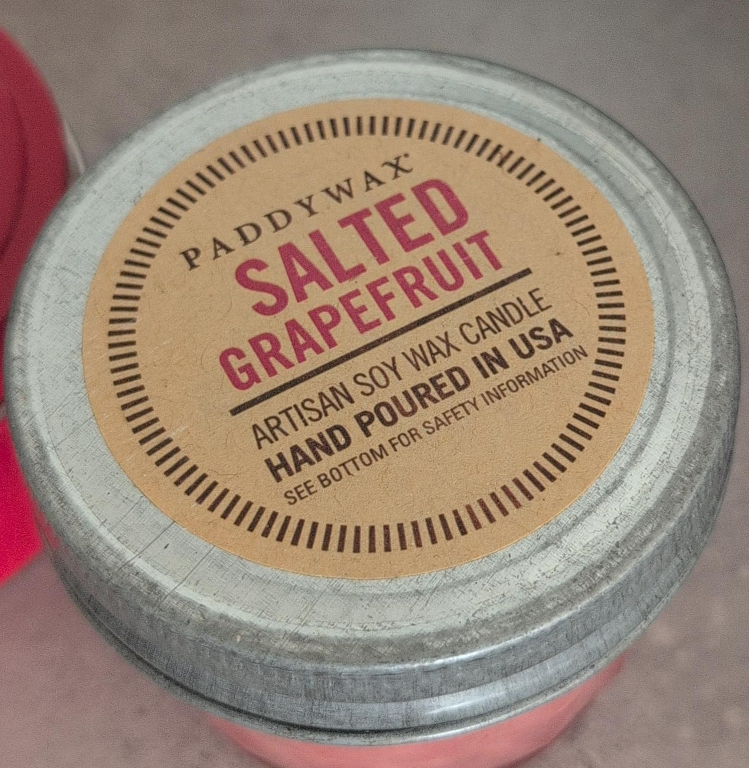 Selling a Paddywax Salted Grapefruit artisan soy wax candle (3oz). It's hand poured in the USA. Brand new with a rustic look. Burns for 20 to 25 hours. Available to be sold individually or as a lot (see other candle listings).