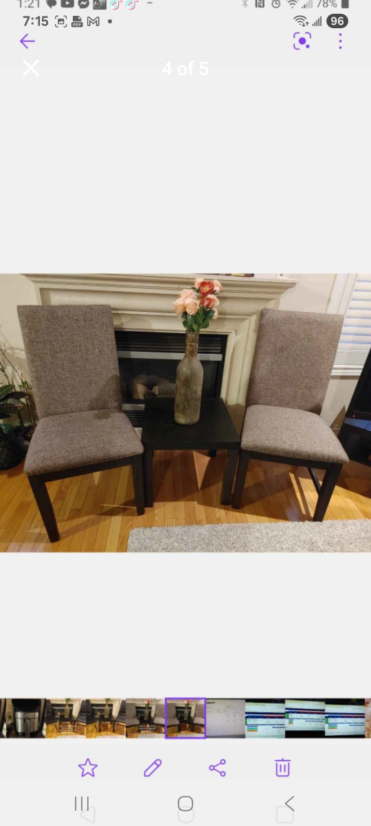 Selling a set of stylish black Padria side chairs! They're in great shape and would look fantastic in any dining room or living space. Originally bought for $150 $80 for both the other wooden chair is from Leon's $80 pair or $45 for each