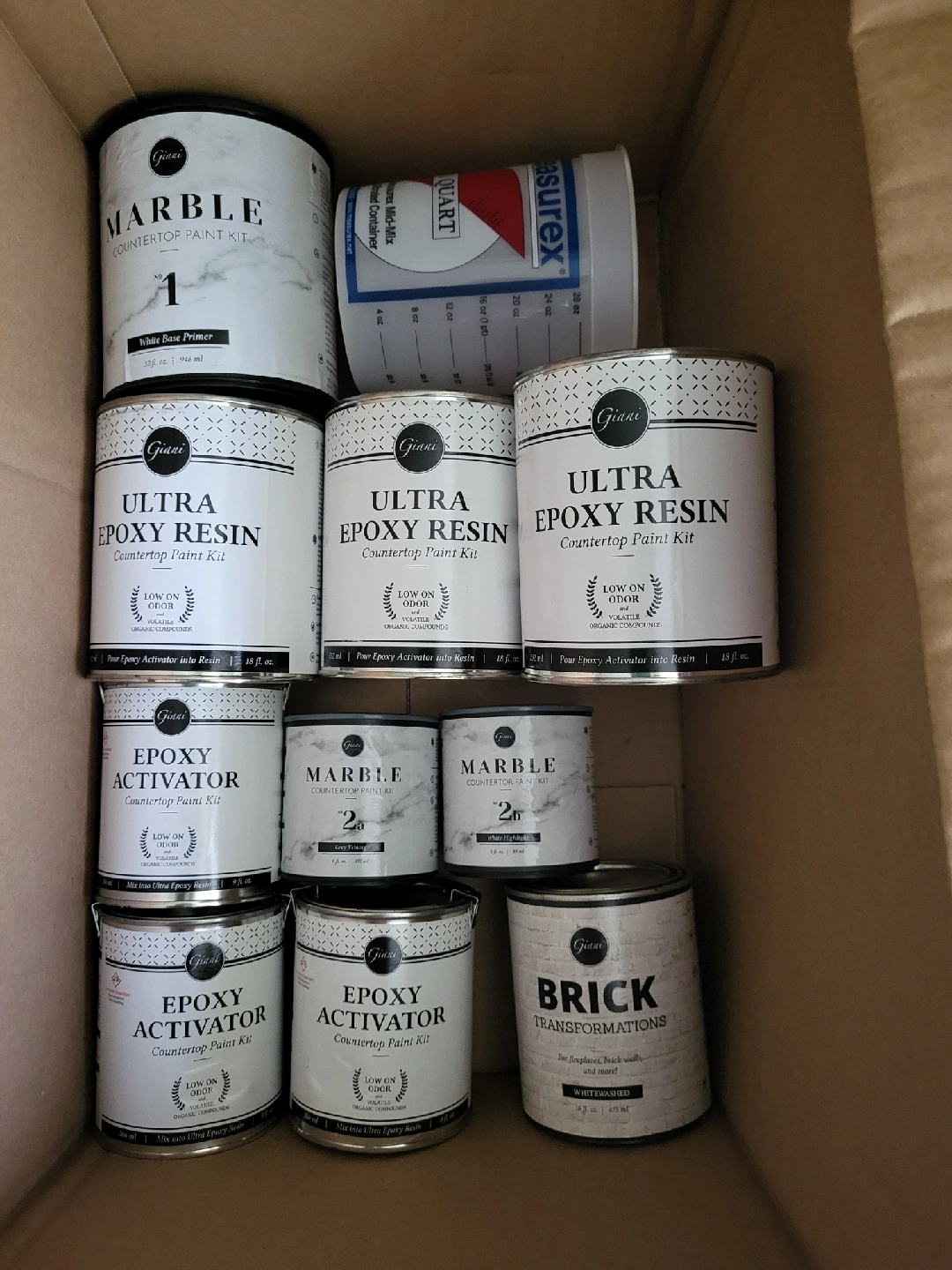 Selling a variety of Giani countertop and brick transformation paint kits! You'll find Marble Countertop Paint Kit (White Base Primer), Ultra Epoxy Resin Countertop Paint Kit, Epoxy Activator Countertop Paint Kit, Marble Countertop Paint Kit (Grey Toning, White Highlight), and Brick Transformations (Whitewashed). Perfect for your next home project. bought for $230 + $45 ( brick paint) from Amazon