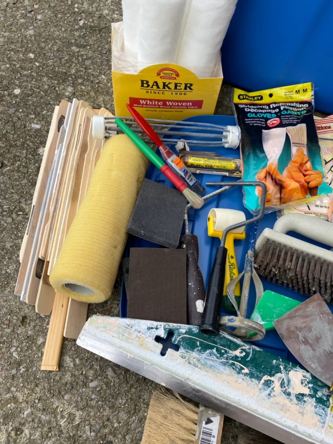 A collection of painting supplies including rollers, brushes, scrapers, and more! Perfect for your next DIY project or home renovation. Everything you need to get started is right here Pick up on Kennedy road between 19th Avenue and Stouffville Road